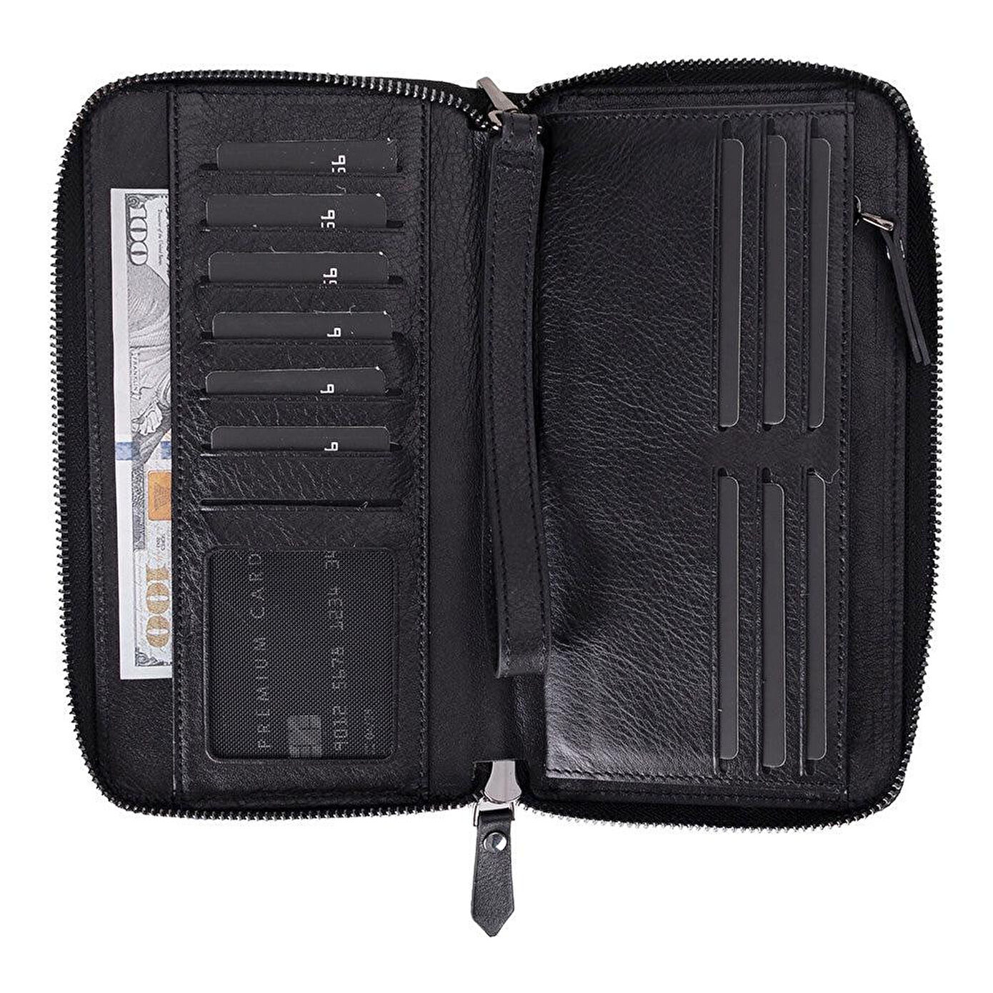 BloomPorter Obsidian Black Hakiki Deri Telefon Bölmeli Cüzdan