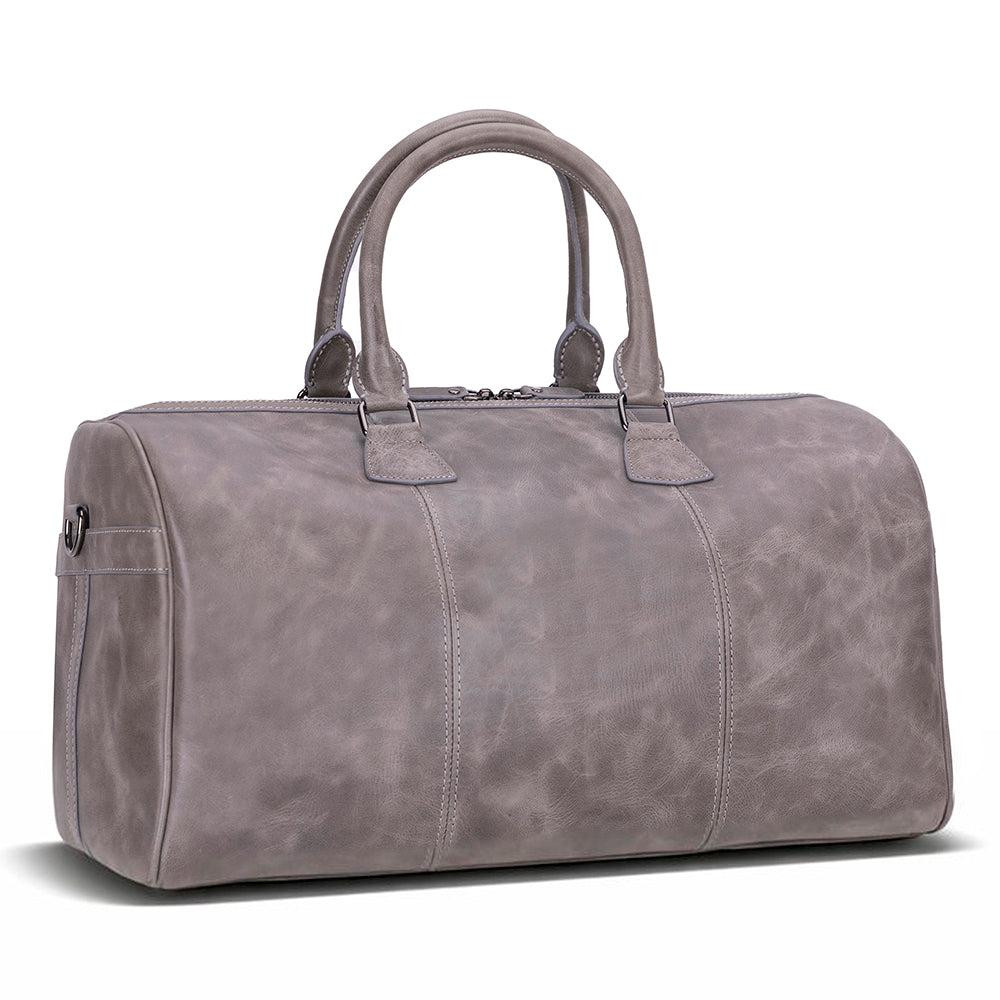 BloomVoyage Ash Gray Hakiki Deri Duffle Çanta – Unisex Seyahat & Hafta Sonu Çantası