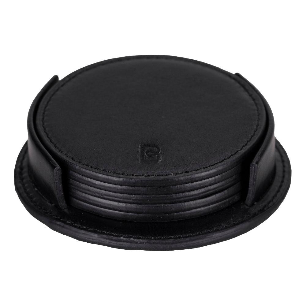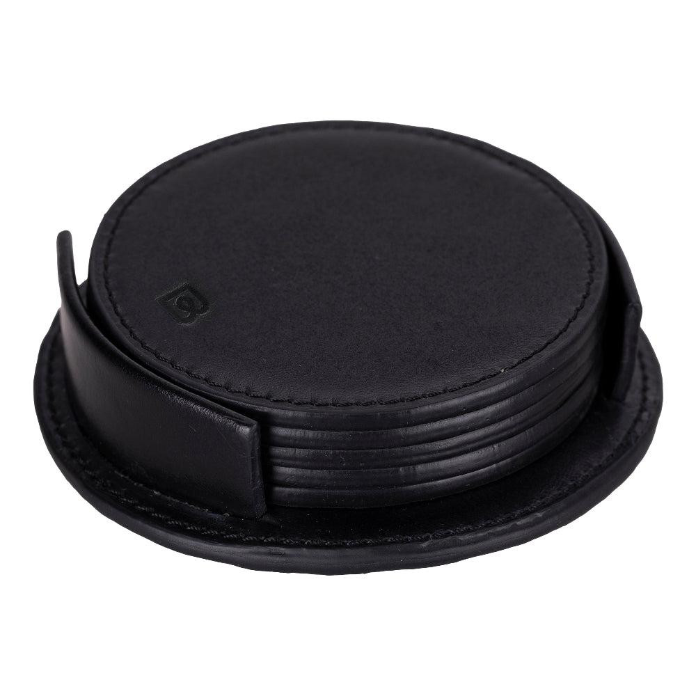 Siyah Deri Yuvarlak Bardak Altlığı Seti (5'li)
