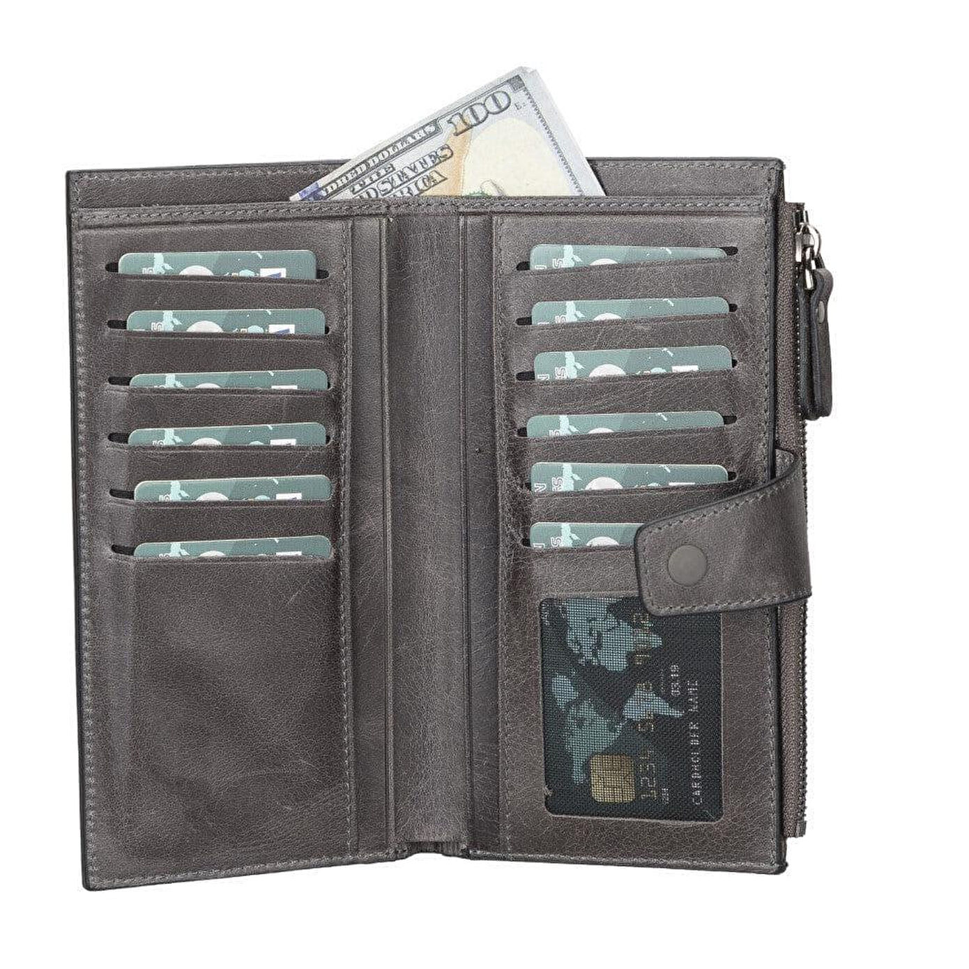 Lozan Ash Mist hakiki deri cüzdan & telefon çantası. 11 kart yuvası, fermuarlı bozuk para cebi, kadife astarlı telefon bölmesi ile şık ve pratik tasarım.