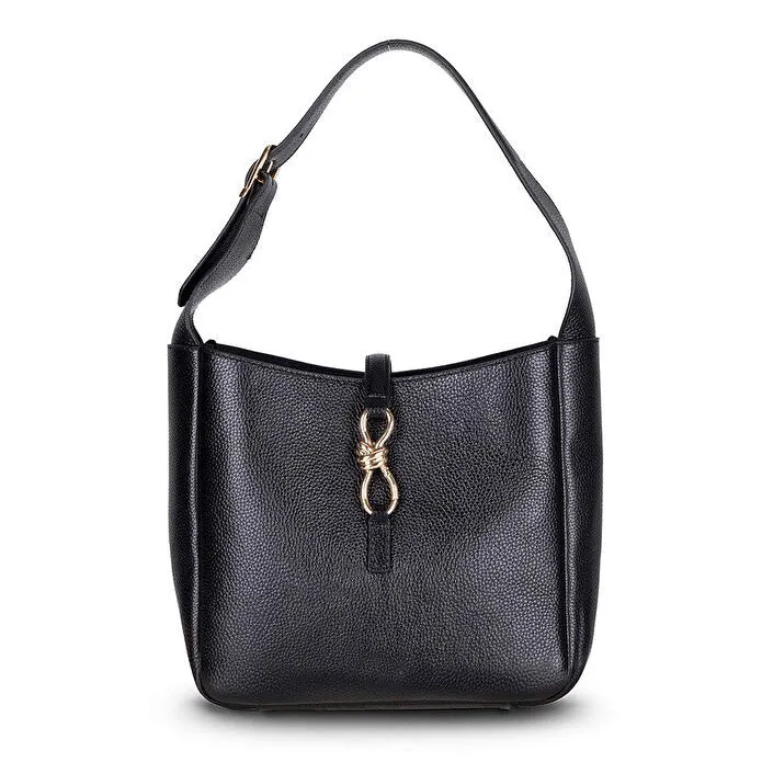 Bloominbag Ravello Cimbrone Noir Black Leather Shoulder Bag / Deri Omuz Çantası