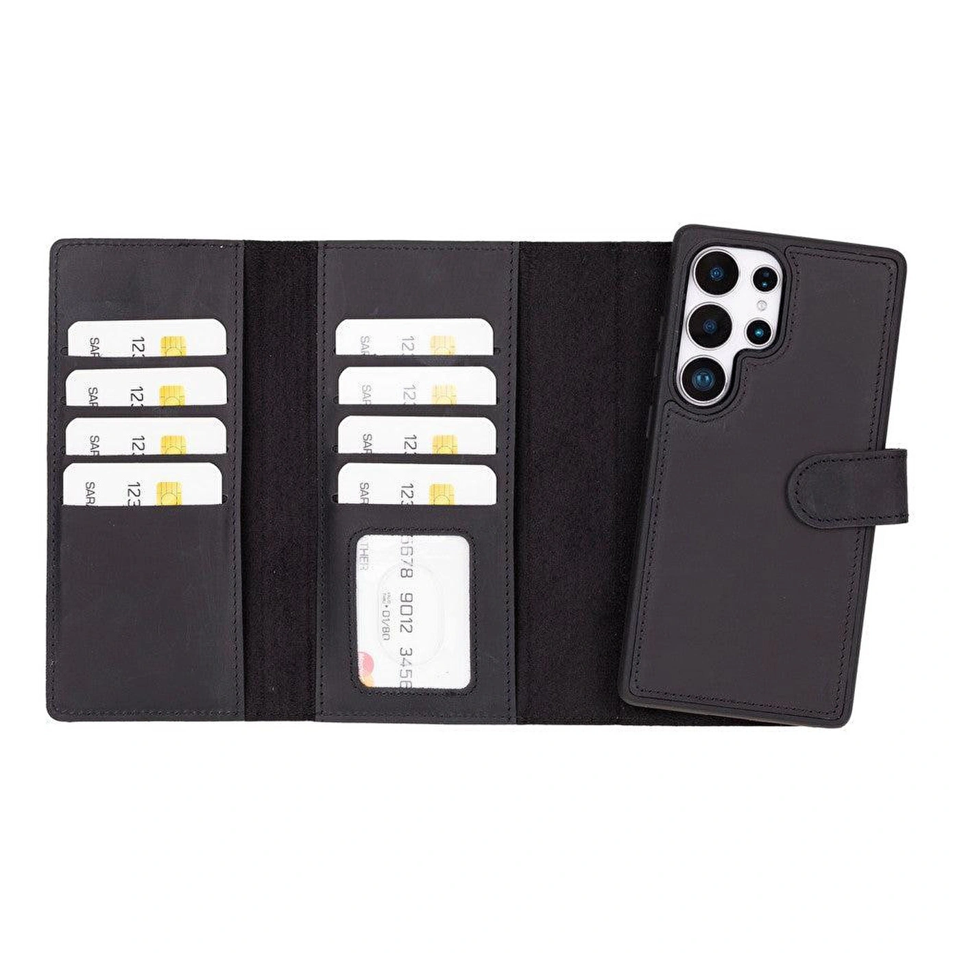VALENO Onyx Black Deri Wallet Case Samsung Galaxy S25 Ultra (6.9") | Manyetik Ayrılabilir Cüzdanlı Telefon Kılıfı