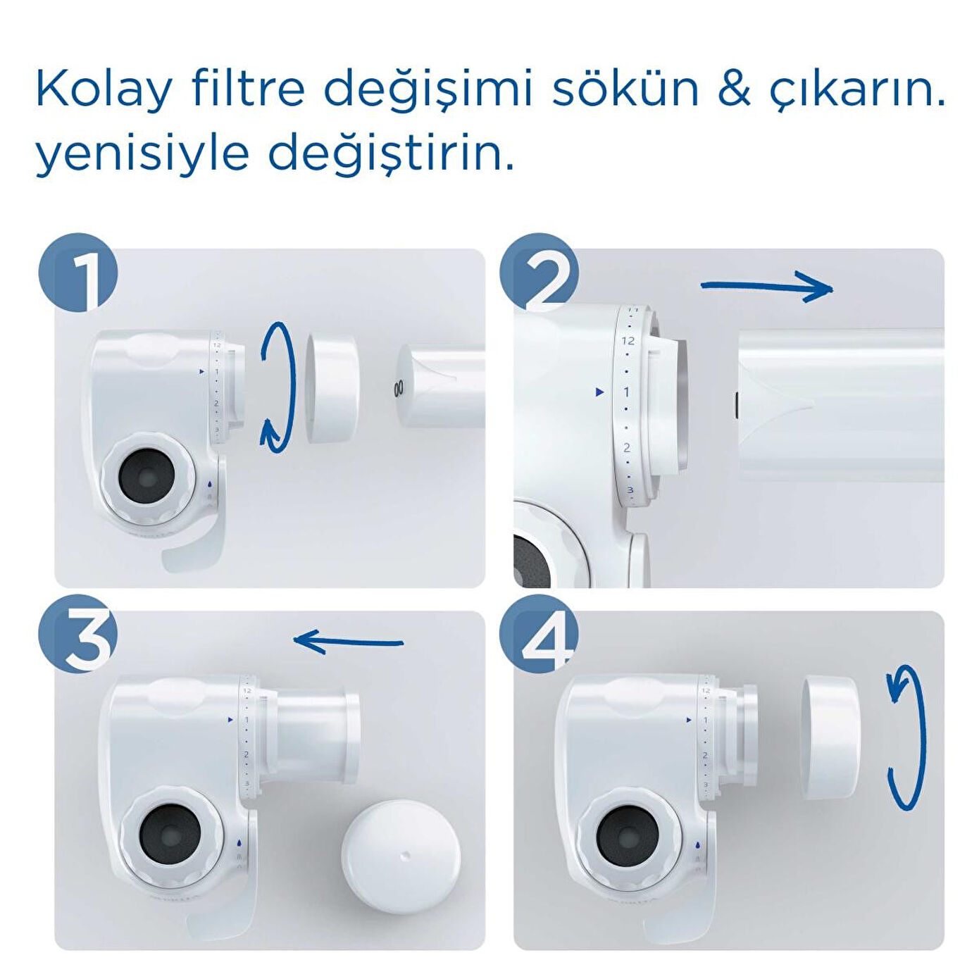 · Kolay filtre değişimi: Kapağı açın, eski filtreyi çıkarın ve yenisini takın. Her filtre 600 litreye kadar filtrelenmiş su sağlar (yaklaşık 4 ay). Böylece şişelenmiş suya harcayacağınız zaman ve paradan tasarruf edebilirsiniz.
