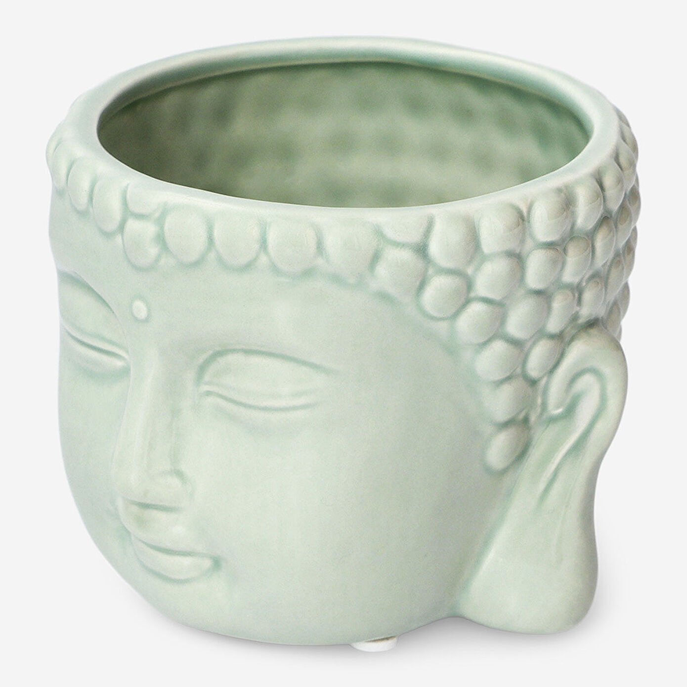 Yeşil Buda Şekilli Saksı 10 cm, iç mekan bitkileri, sukulentler veya minik çiçeklerle kullanıldığında meditasyon köşelerine, masa üstlerine ya da raflara huzurlu bir dokunuş ekler. Kompakt boyutu sayesinde dar alanlarda bile etkili bir dekoratif parça olabilir. Hem bitki tutucu hem de farkındalığı ve dinginliği simgeleyen bir sanat eseri olarak, bu Buda başlı saksı yaşam alanınıza manevi bir atmosfer katar.