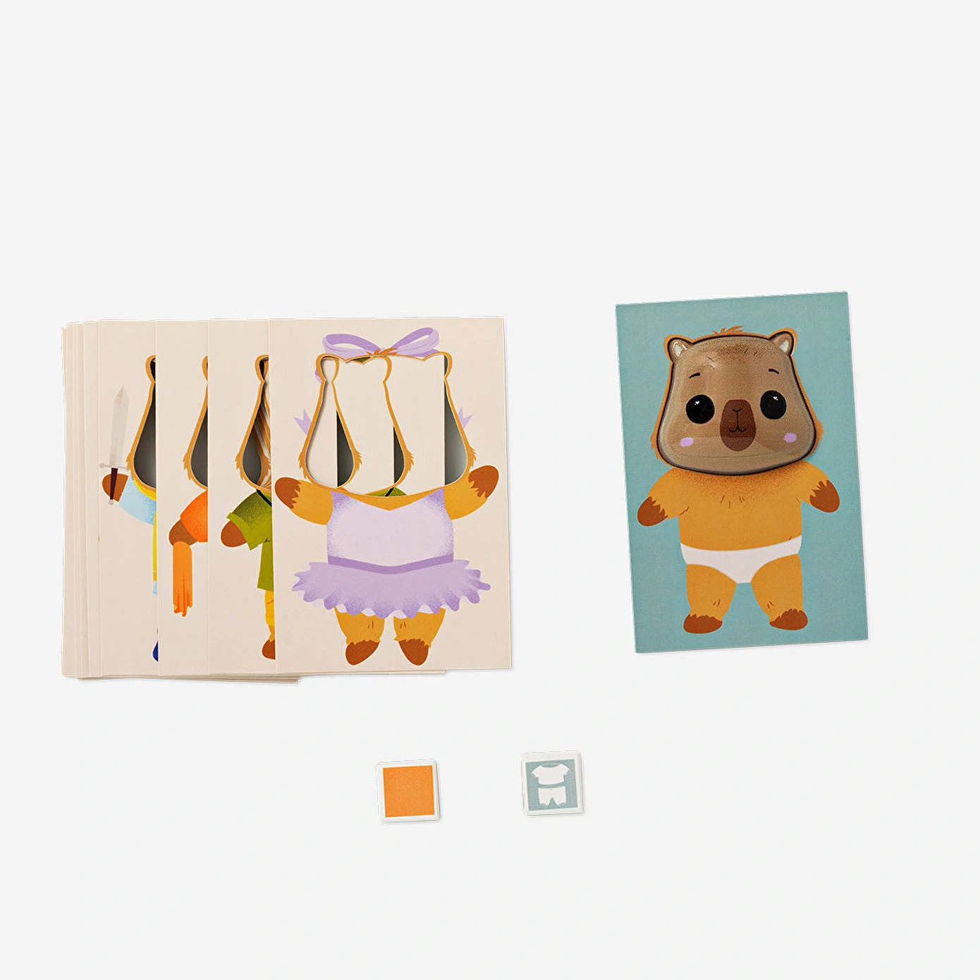 Kapibara Kıyafet Eşleştirme Oyunu, küçük oyuncuların yaratıcılığını ve moda anlayışını geliştirmek için tasarlanmış eğlenceli bir kart oyunudur. Kompakt yapısı sayesinde hareket halindeyken eğlence sunar ve çocuklar sevimli kapibaraya uygun kıyafetleri karıştırıp eşleştirerek keyifli zaman geçirir. Bu oyun, renkli tasarımlarıyla çocukların hayal gücünü destekler ve saatler süren yaratıcı bir oyun imkanı sunar.