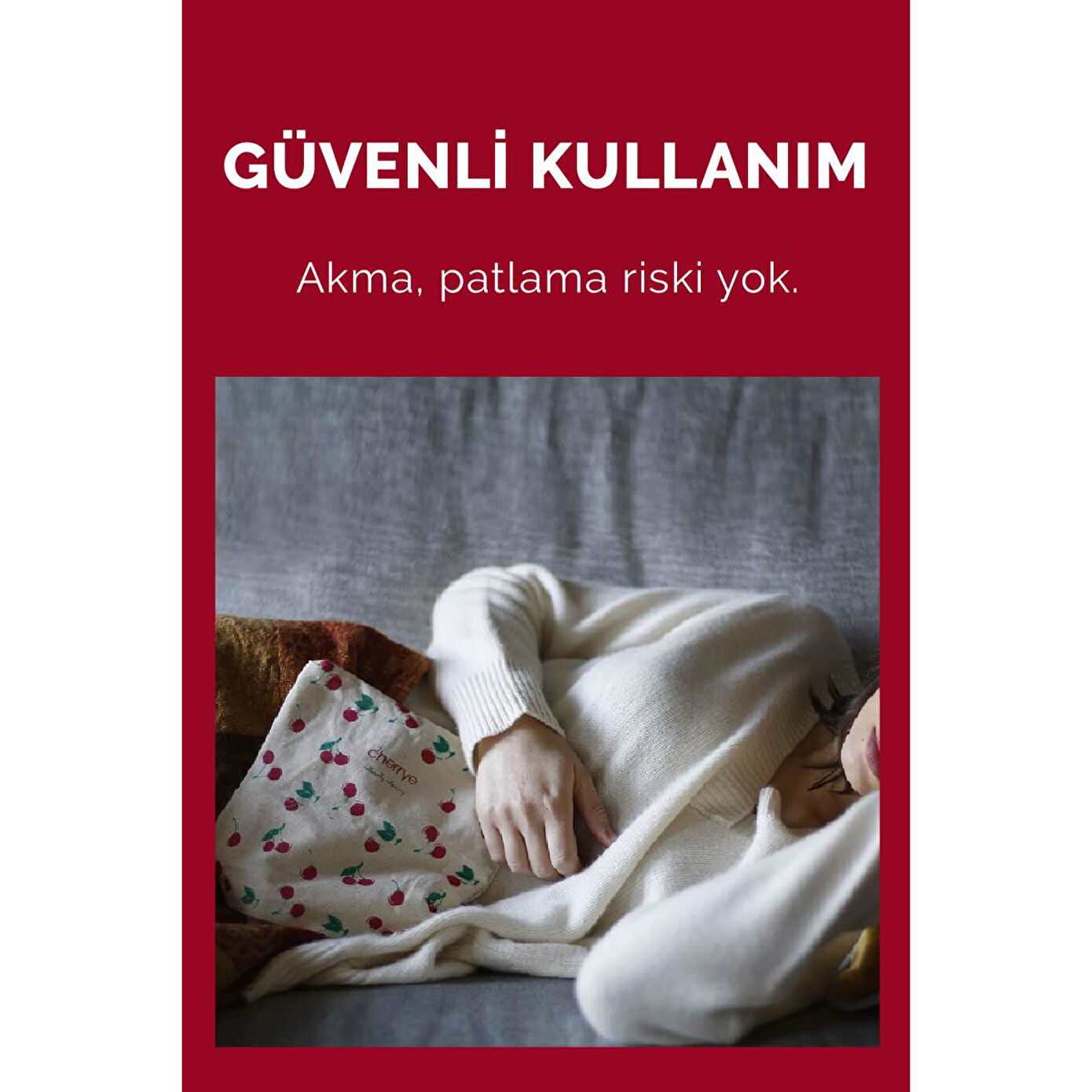 Cherrye Kiraz Çekirdekli Rahatlama Yastığı (tüm bölgeler için ideal boyut) İçeriğinde 100% kiraz çekirdeği bulunur; Ağrı ve acının anında rahatlatılmasına yardımcıdır; Özellikle adet dönemi ağrılarında kurtarıcıdır; Mikrodalgada 2; 3dk ısıtmak yeterli; Yıkanabilir 100% pamuk dış kılıf ile hijyenik; Dilerseniz buzlukta 40dk bekleterek soğuk da kullanabilirsiniz; Sıcak su torbasının aksine akma, patlama riski yok! Kablo, elektrik riski yok; 100% Doğal!!! Gittiğin heryerde yanında götürebilirsin; Avrupa’nın 1 numaralı ürünü; Vücudun Sana Teşekkür Edecek!;