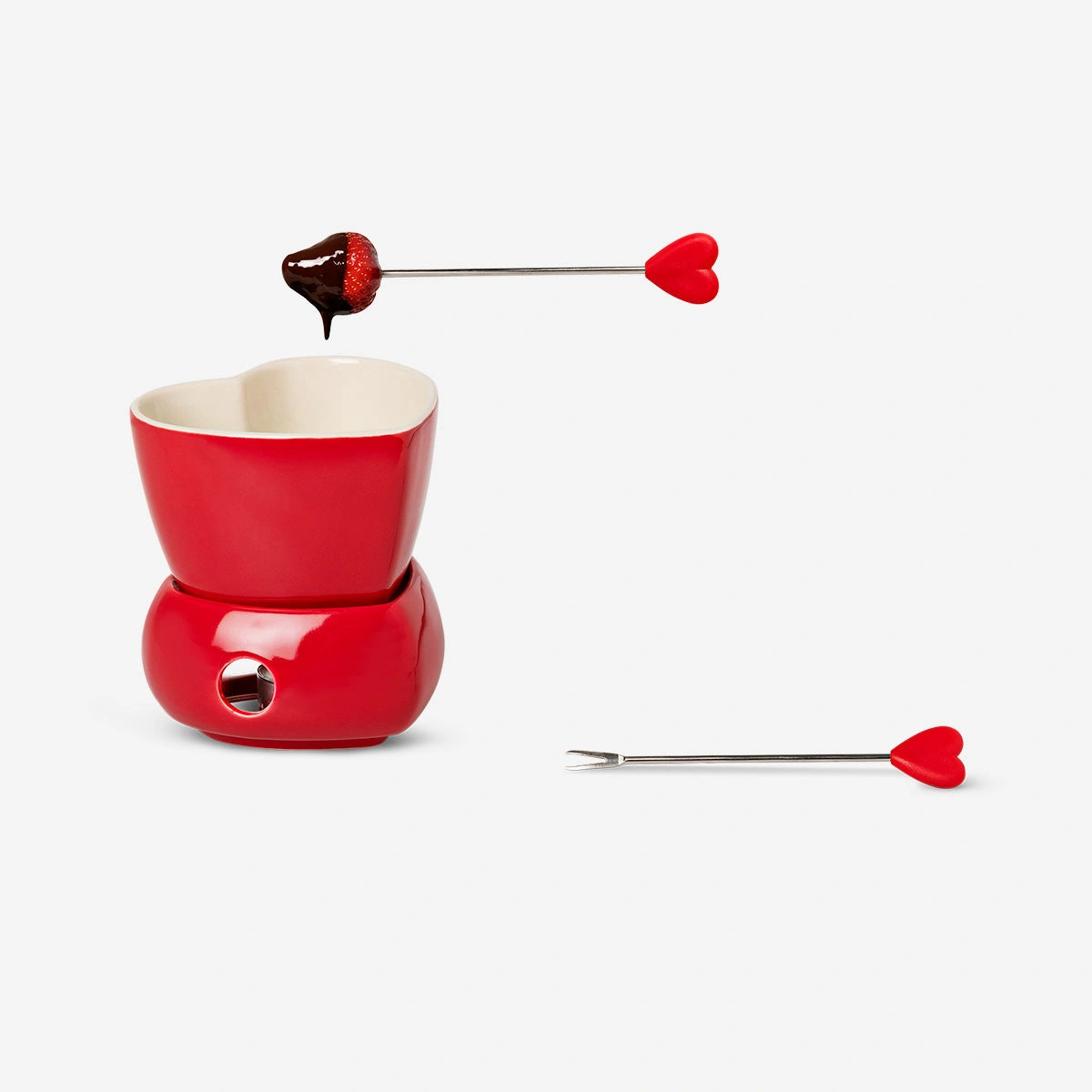 Seramik kase, kolay temizlik için bulaşık makinesinde yıkanabilir, stand ve çatallar ise elde yıkama için uygundur. Kırmızı Kalp Şekilli Fondü Seti, çikolata eritmek ve meyveler, marshmallowlar ya da kurabiyeler gibi en sevdiğiniz atıştırmalıkları batırmak için idealdir. Evinizde lezzetli ve eğlenceli bir fondü deneyimi yaratarak hem zarif hem de işlevsel bir mutfak aksesuarına sahip olabilirsiniz.