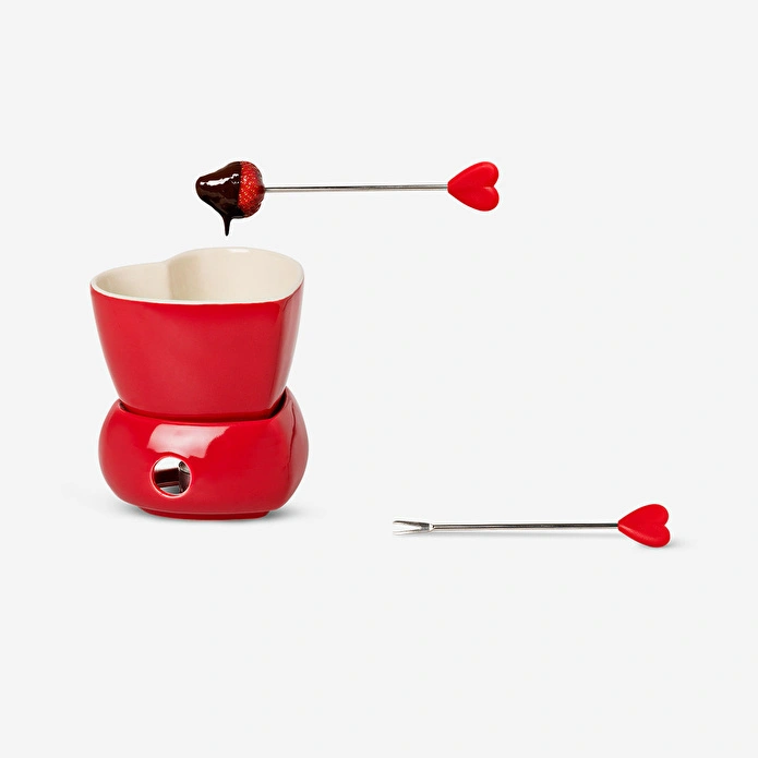 Kırmızı Kalp Şekilli Fondü Seti, tatlı ikramlar için mükemmel bir seçimdir. İki çatalla birlikte gelen bu set, 11,7 x 12,4 x 10,9 cm ölçülerindedir ve romantik akşam yemekleri veya özel kutlamalar için harika bir dokunuş sunar. Kalp şeklindeki şık tasarımı, özellikle Sevgililer Günü gibi anlamlı günler için zarif bir hediyeye dönüşmesini sağlar.