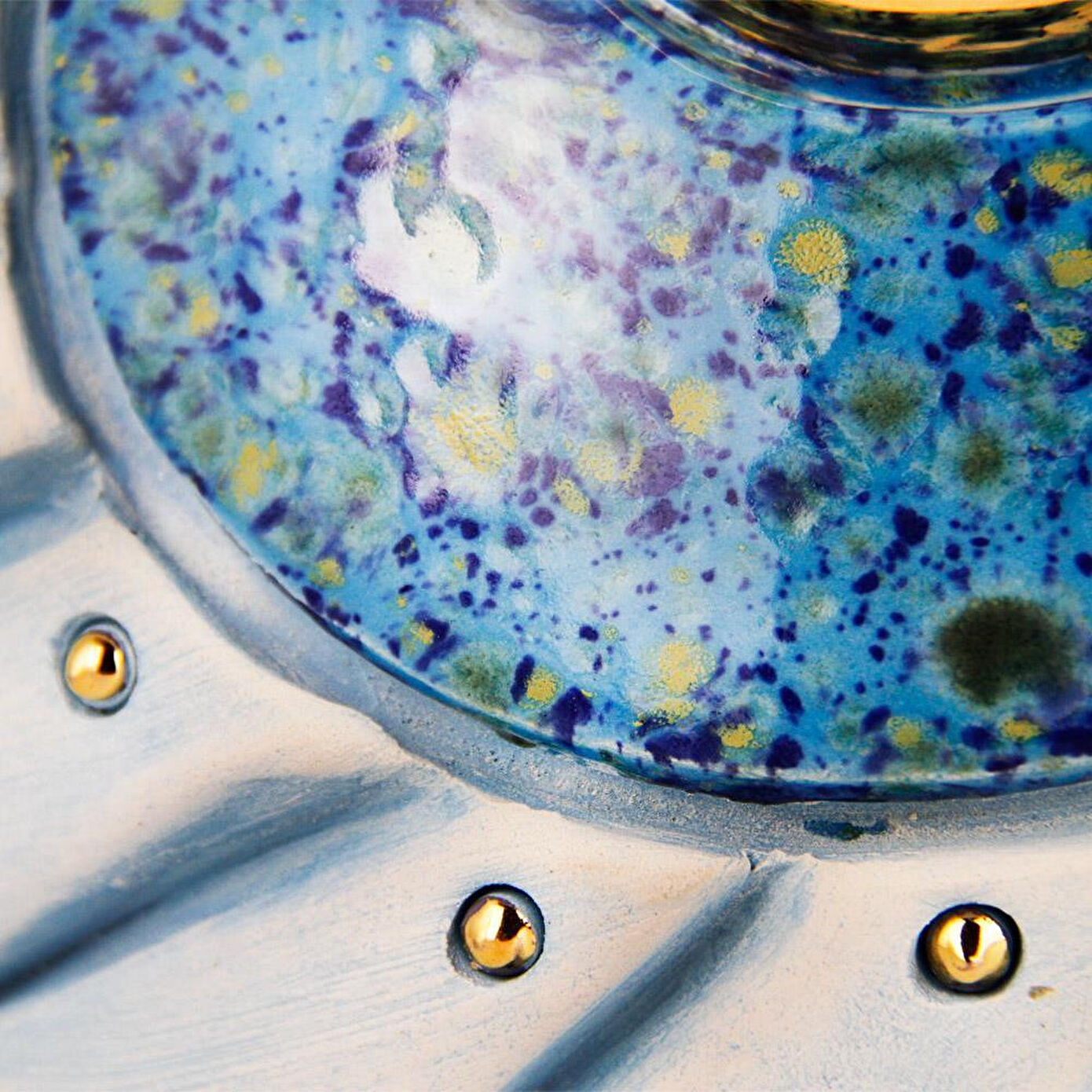 Nazar gitsin bereket gelsin… İkonik nazar boncuğu figürüne sanatsal bir dokunuş. Her evin olmazsa olmazı, geleneksel nazar boncuğuna modern, özgün ve dekoratif bir yorum kattık… Nazar sizden uzak olsun… Hanen ışıkla dolsun… Tarih boyunca birçok kültürde ve dinsel inanışta göz figürü, kötülükleri uzaklaştıran güçlü bir tılsım olarak kabul edilmiştir. Evinizde, her gördüğünüzde sizde özel duygular uyandıran ve sizi iyi hissettiren bir sanat eseri bulundurmanın, günlük yaşamınıza, yaşam enerjinize ve yaşam alanınıza yayacağı pozitif enerjiyi hayal edin… Sanat kişiseldir. Özneldir. Her bir sanat eseri her insan için farklı duygular ve farklı manalar demektir. COHO art seramik el yapımı objeler sizin için sanatkârımız tarafından özel olarak üretilir. Butik, tek, özel her bir COHO art ürünü sanatçısının imzası ile satılmaktadır. COHO art sanatsal objelerimiz sevdiklerinize verebileceğiniz, en özgün ve düşünülmüş hediye fikri olarak değerlendirin. - Kurumsal, toplu ve özelleştirilmiş siparişleriniz için lütfen iletişime geçiniz… İncelediğiniz ürün “COHO objet originale” markasına aittir ve sadece bu marka ile satılmaktadır. Üretim Tekniği: Tamamı elde şekillendirilen ham seramik üstü ürüne ait renkte sırlar ve 24 ayar seyreltilmiş altın sırrı kullanılarak yüksek sıcaklıklı fırınlarda özenle üretilir. Ölçüler: 22 cm x 14 cm Notlar: Yüksek kalite sır kullanılmıştır. Ürün özel kutusu ile gönderilecektir. Yıkanmaması, nemli bez ile temizlenmesi önerilir. Objelerimiz el yapımı ve herbiri ayrı ayrı üretildiğinden görselde görülen yüzey dokularında az da olsa nüans farklılıklar olabilmektedir.