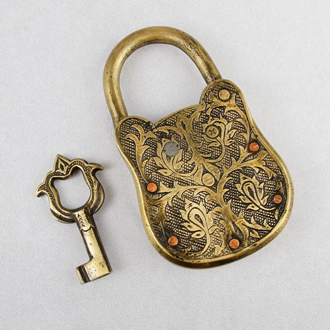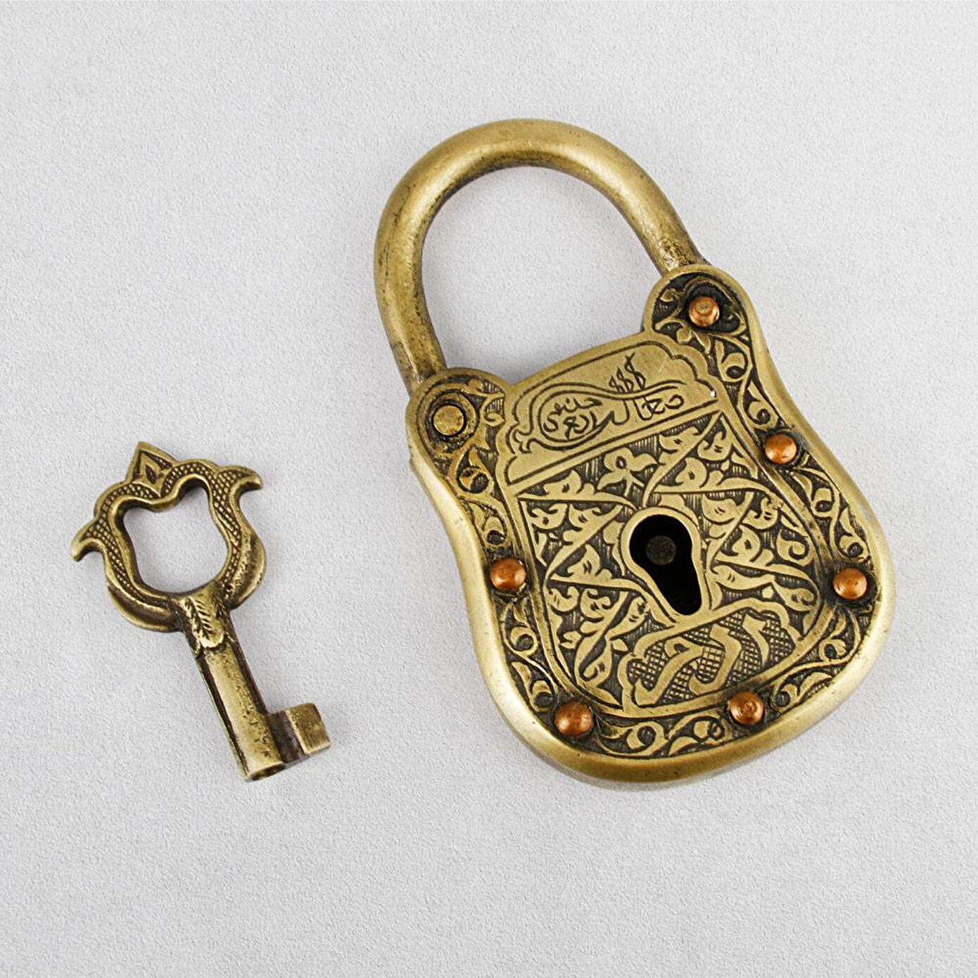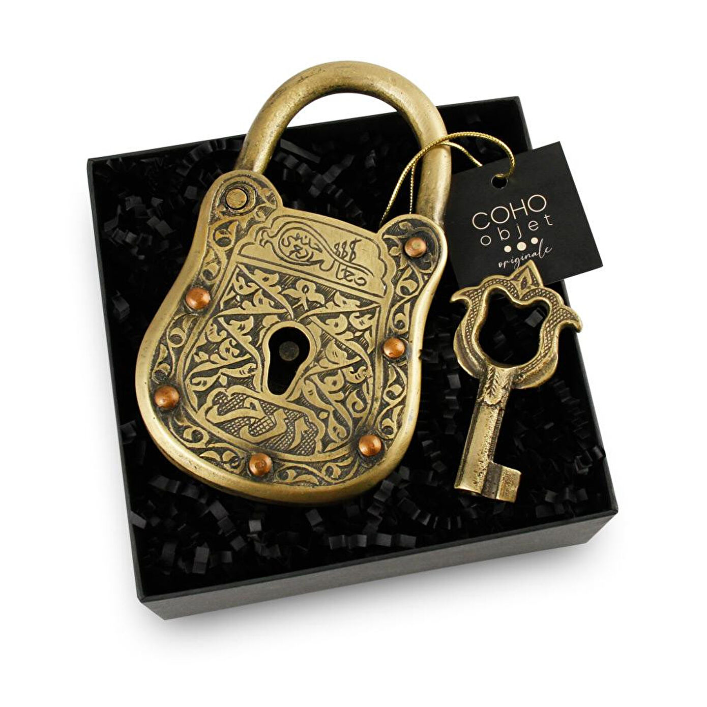 Coho Objet Coho Brazen İşlemeli Dekoratif Pirinç Kilit & Anahtar