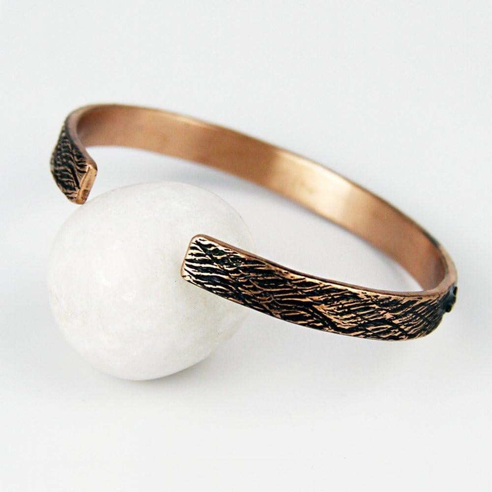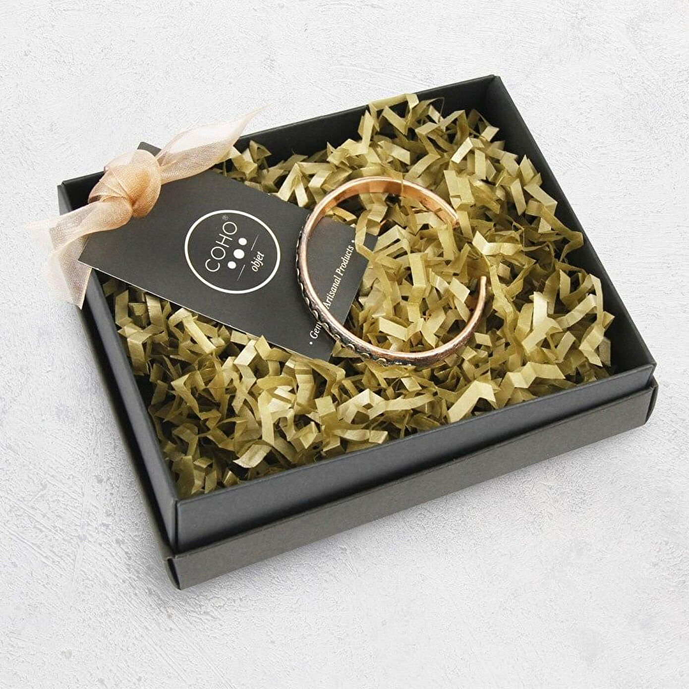 Coho özgün bakır bileklikler usta zanaatkarların ellerinde tamamı A kalite saf bakır ve doğal taşlardan elde yoğun emek ile işlenerek üretilir. Atalarımızın yüzyıllardır kuşandığı bakır takılar özellikle ‘’Nazarı’’ sizden ve sevdiklerinizden uzaklaştırmaya yardımcı olur. Anadolu’da bu nedenle geçmişten günümüze bakır tılsımlı takı olarak görülmektedir. Hem şık hem de spiritüel olarak enerjinizi tamamlayacak düşünülmüş bir hediyeye ne dersiniz? Kendinize ve sevdiklerinize sunacağınız hediyeler için şık, usta işi Coho bileklikleri tercih edebilirsiniz… Özel hediye kutusunda gönderim yapılmaktadır. Farklı motiflerde, dokularda modeller ve doğal taşlı bakır bilekliklerimizi keşfetmek için sayfamızı ziyaret ediniz… Ürünlerimizde saf bakır ve Turkuaz, Kedi Gözü, Sedef, Lapis Lazuli gibi doğal ve orjinal taşlar işlenerek kullanılmaktadır. Geçmişten günümüze gelen kadim motif ve desenlerde yine usta işi yöntemlerle bilekliklerimize işlenmektedir… Coho aksesuar ve takılar Türkiye'nin en nitelikli ustaları tarafından üretilir. Asırlardır süregelen tecrübenin mirasçısı zanaatkar ustalar tarafından elde dövülerek güçlendirilen Coho bakır bileklikler el yapımı olduğundan her biri siz ve sevdikleriniz için benzersin olarak üretilmiştir. Neden Bakır Takı: Nazar değmesine karşın kalkan görevi görür. Bakır konsantrasyon gücünü artırır. Saf bakır bilekliklerimiz ayarlanabilir yapıdadır. 15 cm bilek ölçüsü örnek alınarak hazırlanmıştır. Bilekliğin ucunun açık olması manyetik alan yayıcısı olarak çalışmasını sağlar. Bakır tasarımlarımızın tümü el yapımıdır; her biri tek tek elle şekillendirilmiştir. Bakır Bilekliğin arkası açık mı olmalıdır? Enerjinin rahat hareketi ve yüksek faydası için açık olmalıdır. Çünkü enerji evrende stabil bir döngü içerisindedir. Sürekli enerji, hareket nedeni ile bir boşalma noktası gerektirir. Kullanım önerileri: Ürünlerinizi su, parfüm, krem ve tüm kimyasallardan uzak tutunuz. Kumaş kutuda muhafaza edilmeli, banyo vb. nemli alanlardan uzak tutulmalıdır. Her 12 saatte bir toprağa 8 saat bırakabilirsiniz. Bedende yeşil iz bırakır ise veya kararma oluşur ise karbonat ve limoz suyu karışımı, bez yardımı ile ürünü temizleyebilirsiniz. Tuzlu sirke karışımı da tercih edilebilir. Temizlik işlemi görünümünü korur ve bakır üzerindeki plakları temizler ve parlamasını sağlar. Ağırlık ort. 18 gr. (Taşlı bilekliklerde 36 gr.)
