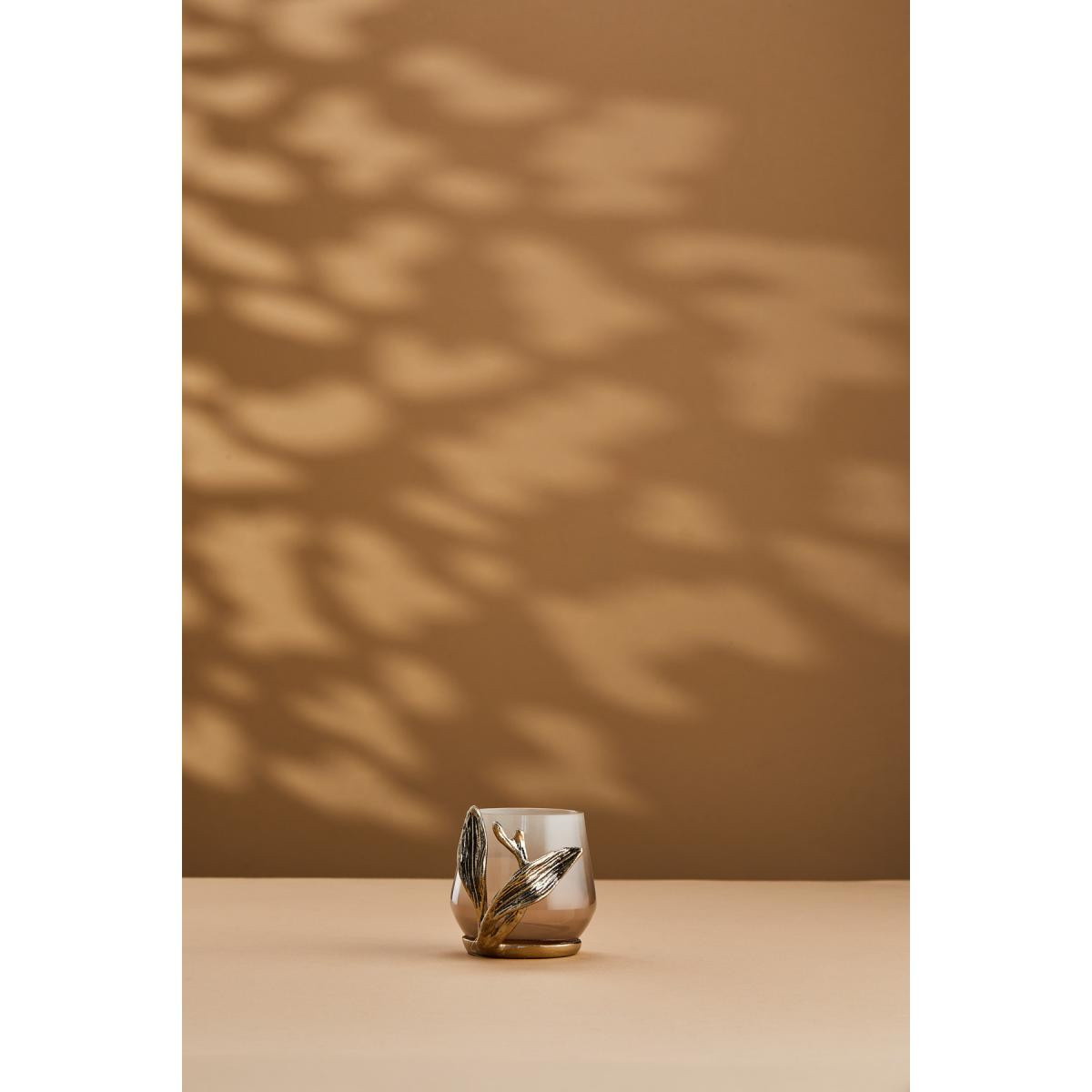 Cornella Ivy Antik Gold Detaylı Krem Ombreli Cam Şamdan Ağız:7 Cm X Boy:9 Cm