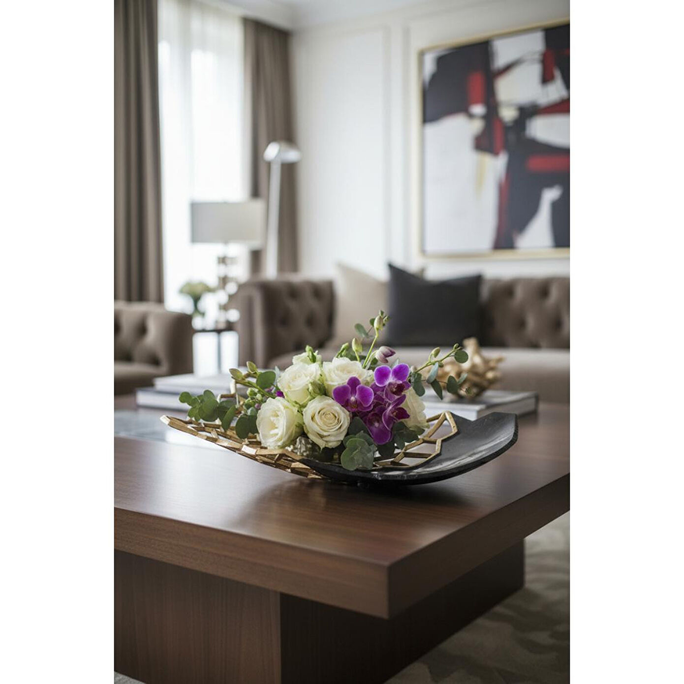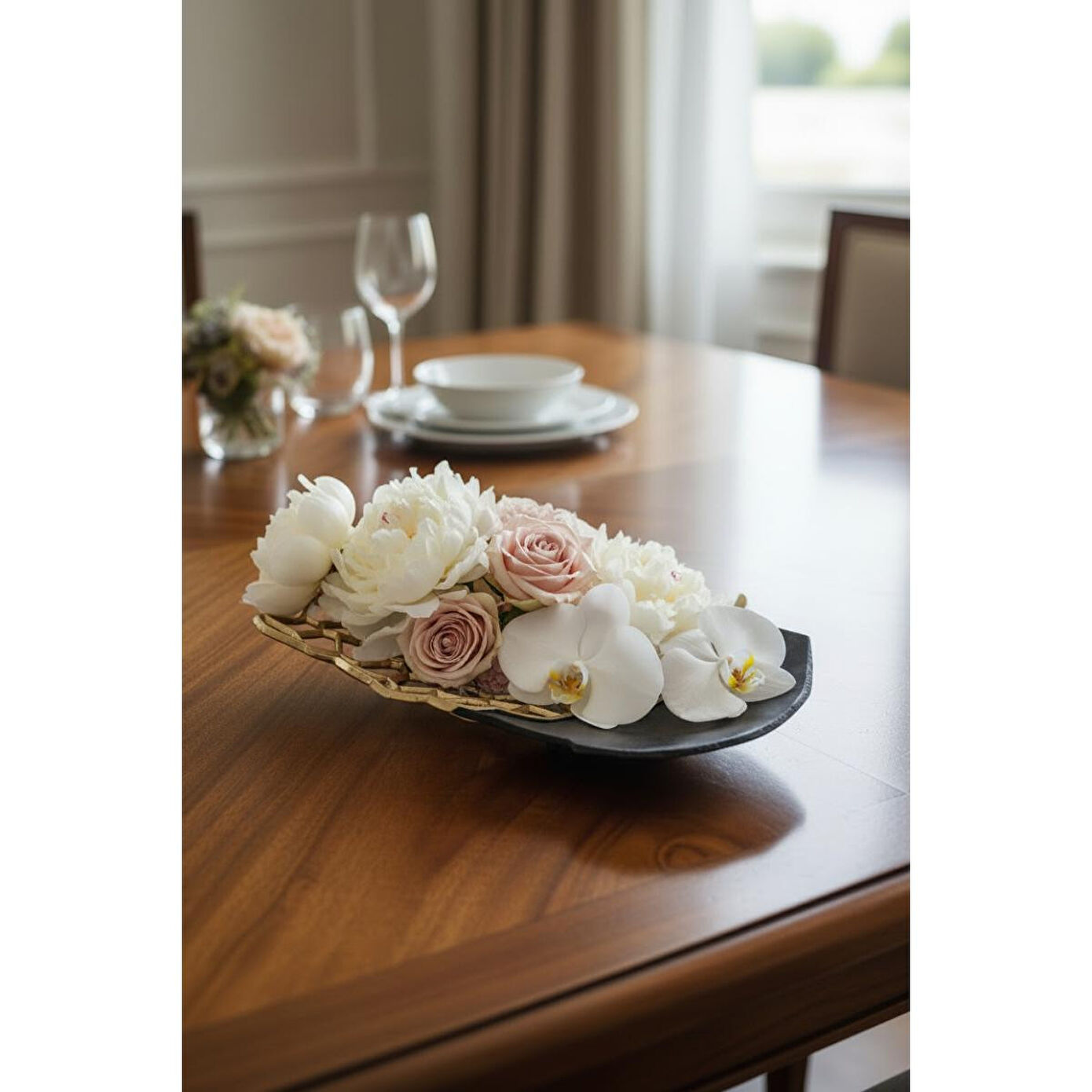 Cornella Pillar Antik Gold Siyah Metal Tabak En:27 Cm X Boy:47 Cm