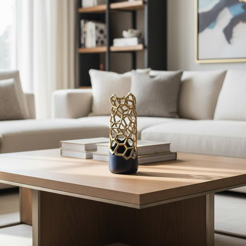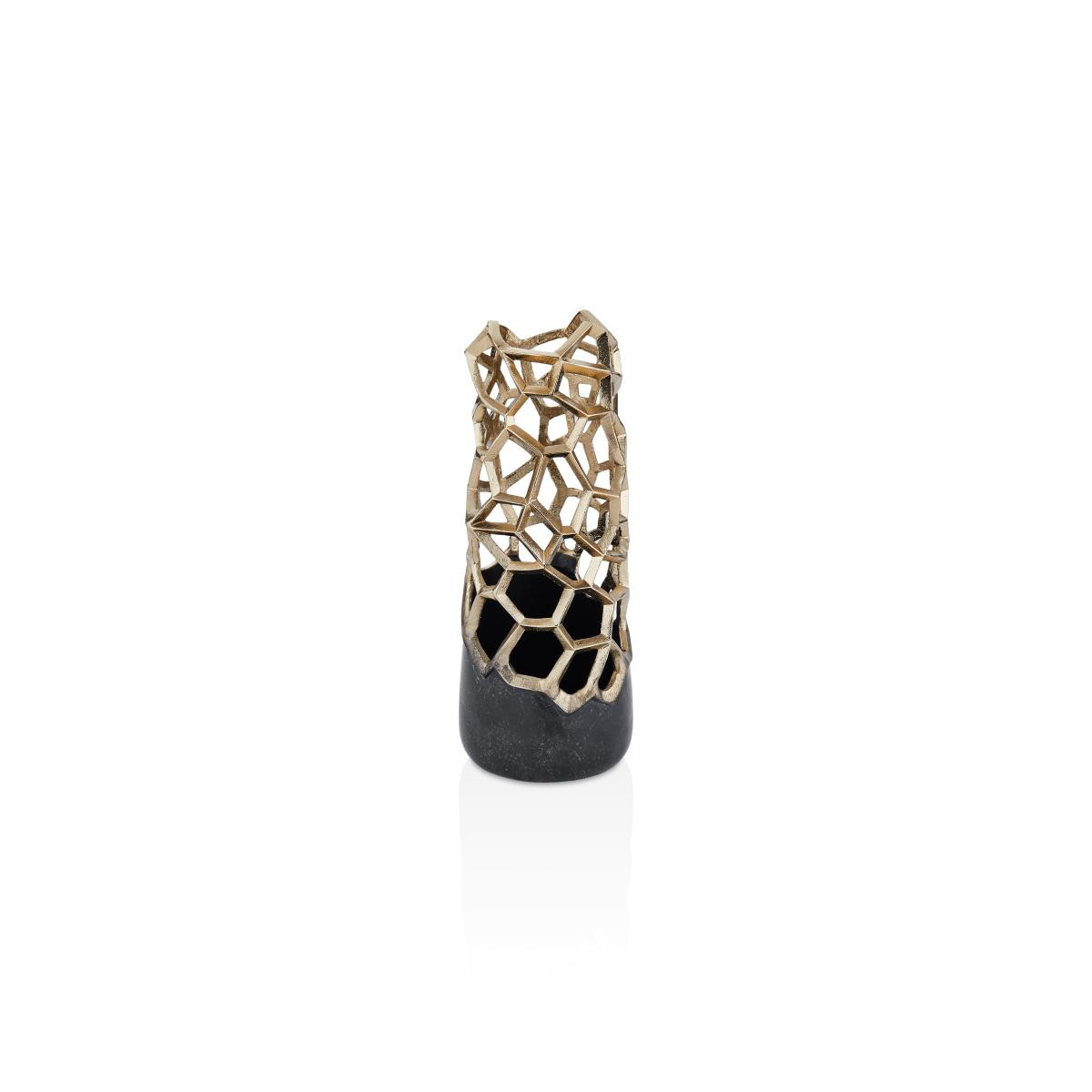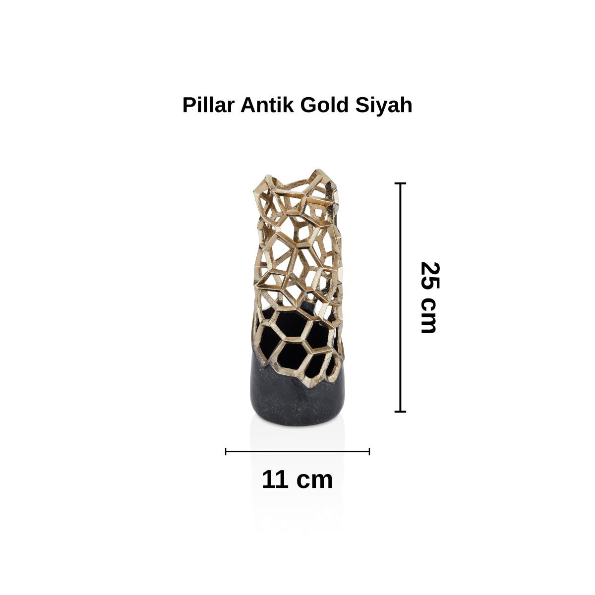 Cornella Pillar Antik Gold Siyah Metal Vazo Ağız:11 Cm X Boy:25 Cm