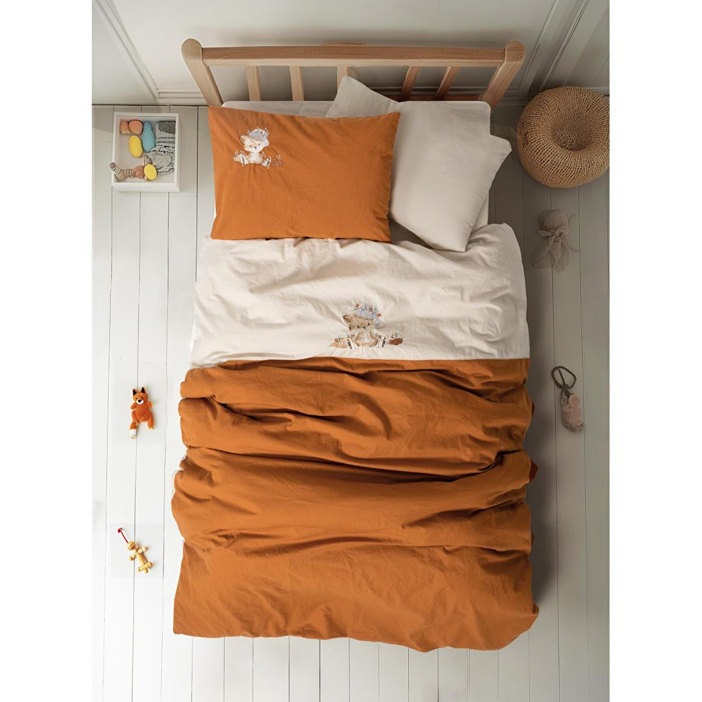 Cotton Box Cuddly Nakışlı Bebek Nevresim Takımı Clever Bej