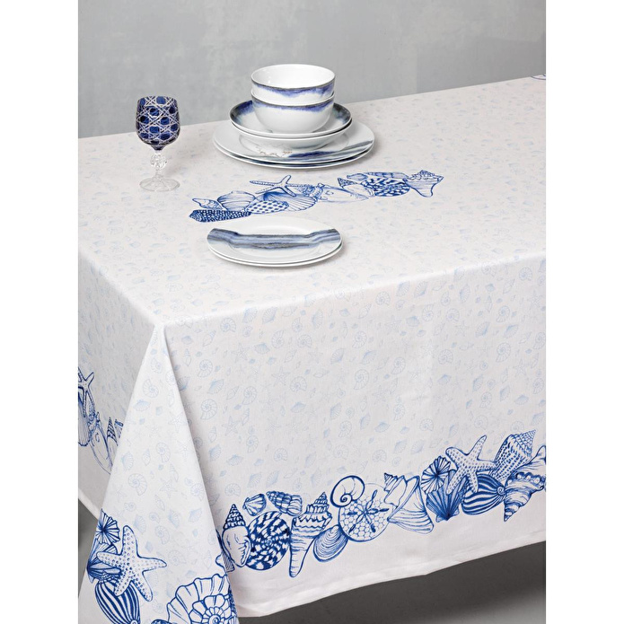 Cotton Box Pano Baskılı Masa Örtüsü Cowry Mavi 170x230