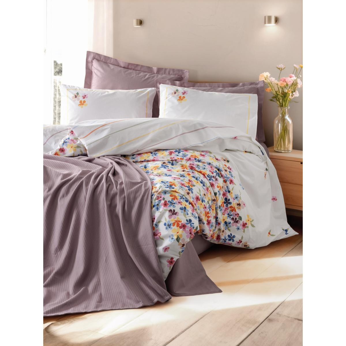 Cotton Box Vivid Tek Kişilik Pikeli Nevresim Takımı Flurry Lila