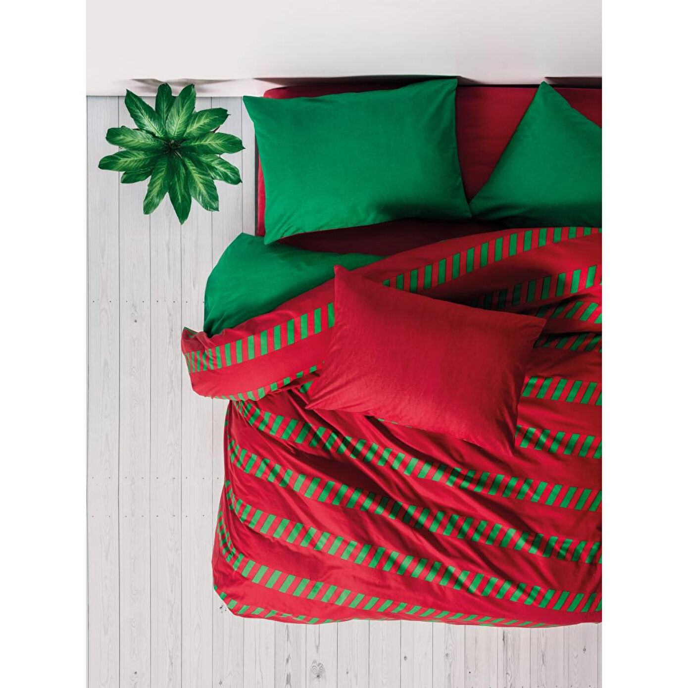 Kırmızı, beyaz ve yeşil renklerinde tasarlanan üç farklı nevresim takımı ile yeni yılı karşılayın. Kırmızının sıcak cazibesi, beyazın sade zarafeti veya yeşilin taze enerjisi… Hangisini seçerseniz seçin, odanıza yılbaşı coşkusunu taşırken Cozy Home şıklığını da hissettirecek.