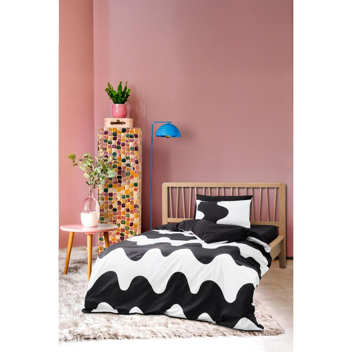 Cozy Home mono Tek Kişilik Lastikli Çarşaflı Nevresim Takımı Flow Siyah