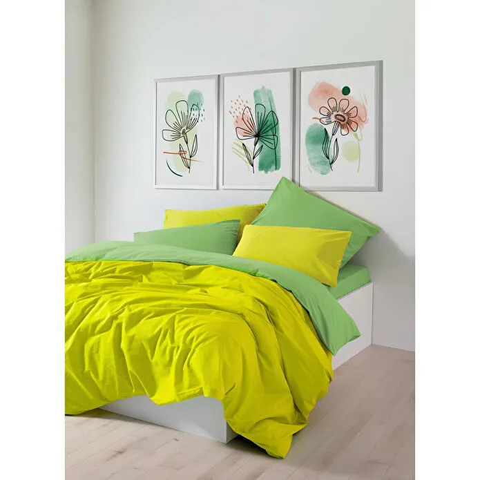 Cozy Home Popping Colors Çift Kişilik Lastikli Çarşaflı Nevresim Takımı Sage Sarı-yeşil