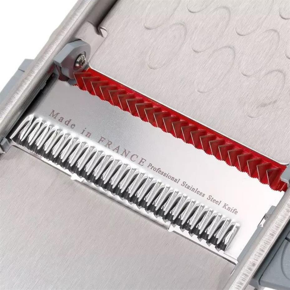 Paslanmaz çelik ve kompozit polimerlerden üretilmiştir. Fırçalanmış saten paslanmaz çelik görünümüyle şık ve dayanıklıdır. Düz veya dalgalı yuvarlak dilimler, 2, 4, 7 veya 10 mm julienne kesimler, waffle kesim, küpler, lozanglar ve 10 mm’ye kadar kalınlıkta dilimler kesebilirsiniz.
