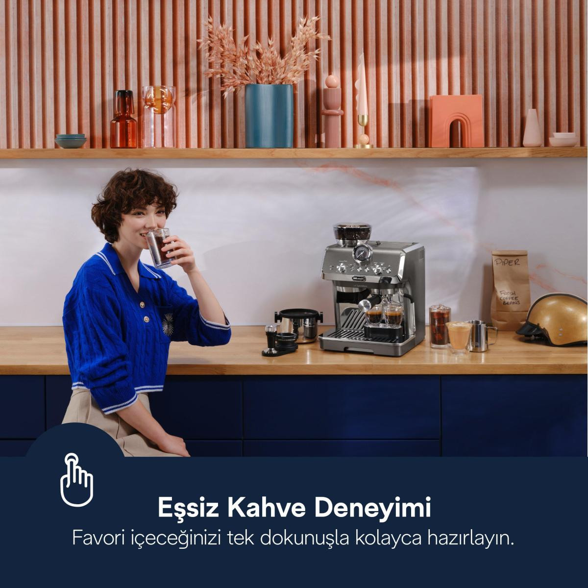 Tercih ettiğiniz zevke uyacak şekilde 8 öğütme ayarlı standart öğütücü ayarı Ekstraksiyon sırasında sabit bir su sıcaklığını korumak için 3 infüzyon sıcaklık profili ve Aktif Sıcaklık Kontrolü Soğuk Ekstraksiyon Teknolojisi ile 5 dakikadan kısa sürede * Soğuk Demleme yapın Portafiltrenin dışına zemin düşmesini önlemek için Dozajlama ve Sıkıştırma Kılavuzu da dahil olmak üzere tam aksesuar kitini kullanarak barista deneyimini evde yaşayın.