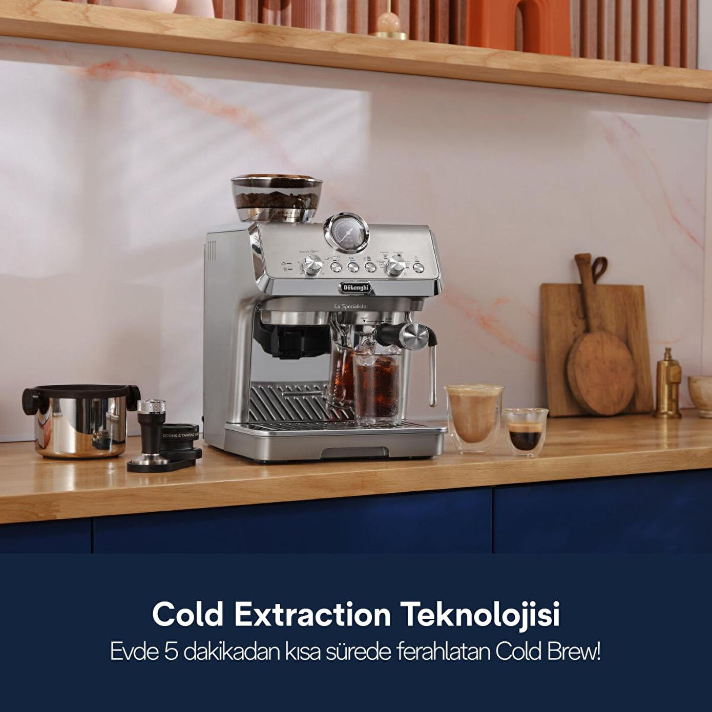 Tercih ettiğiniz damak tadına uygun 8 öğütme ayarına sahip standart öğütücü ayarı Ekstraksiyon sırasında sabit bir su sıcaklığı sağlamak için 3 infüzyon sıcaklık profili ve Aktif Sıcaklık Kontrolü Soğuk Ekstraksiyon Teknolojisi ile 5 dakikadan kısa sürede Soğuk Demleme yapın* Portafiltrenin dışına kahve telvesinin düşmesini önlemek için Dozajlama ve Tamping Kılavuzu dahil olmak üzere tam aksesuar kitini kullanarak evde barista deneyimini yaşayın
