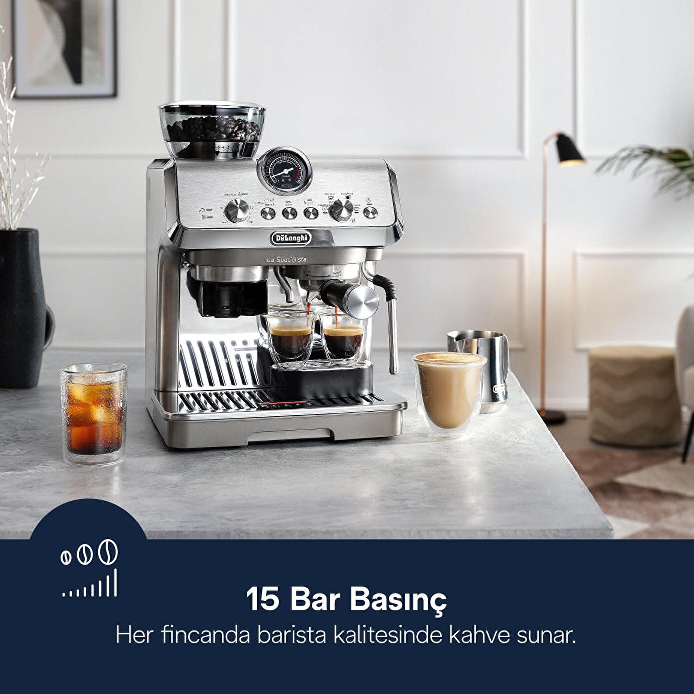 La Specialista Arte Evo ile kahve olanaklarının dünyasını keşfedin. Baristalardan ilham alan bu kompakt kahve makinesi, kahve yapma süreci boyunca kontrolü size verir. 8 öğütme ayarı, 3 sıcaklık profili, Aktif Sıcaklık Kontrolü ve Soğuk Ekstraksiyon Teknolojisi ile mükemmel kahveyi hazırlamanıza yardımcı olur. Farklı kahve çekirdeği çeşitlerini keşfedin ve en sevdiğiniz sıcak ve soğuk içeceklerin tadını çıkarın.