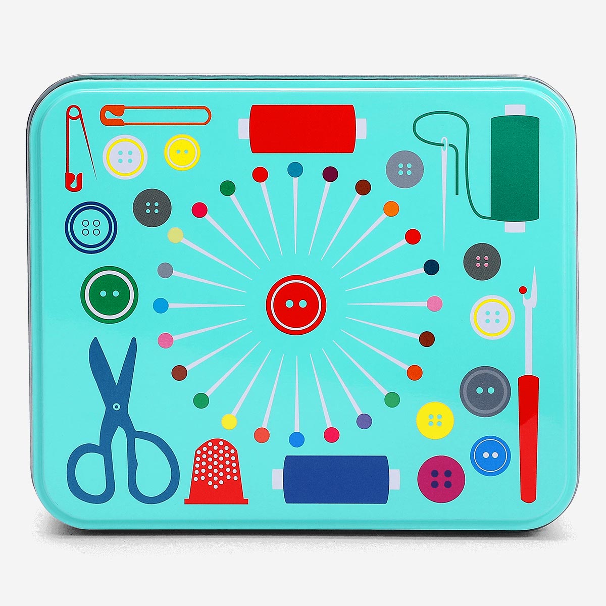 Kutu içinde farklı renklerde altı rulo iplik, altı düğme, iğne geçirici, çengelli iğneler, iğneler, parmaklarınızı korumak için yüksük, kesmek için makas ve doğru ölçümler için ölçüm bandı bulunur. Ayrıca dikişleri kolayca sökmeniz için bir dikiş sökücü de mevcuttur. Kompakt boyutuyla çekmecelere, çantalara veya seyahat valizlerine rahatça sığar; bu sayede istediğiniz her yere götürebilirsiniz. Metal yapı içindeki malzemeleri koruyarak onları her zaman düzenli ve kullanıma hazır tutar.