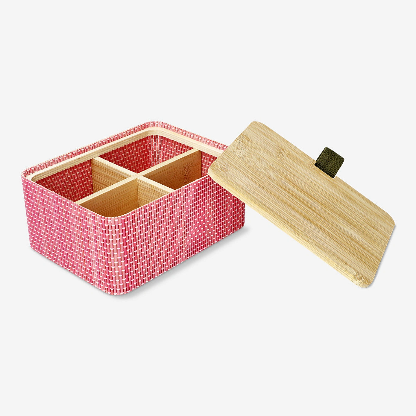 Kapaklı Bambu Kutu 15 cm x 20 cm, alanınızı düzenlemenin şık ve pratik bir yolunu sunar. 20 x 8,5 x 15 cm ölçülerindeki bu bölmeli kutu, dört ayrı bölmesiyle ofis malzemelerinden mutfak gereçlerine, kişisel aksesuarlardan küçük ev eşyalarına kadar her türlü düzenleme ihtiyacınıza cevap verir. Doğal bambu malzemesi, modern ve minimalist bir estetik sunarak her dekorla uyumlu bir görünüm sağlar. Ayrıca, güvenli kapağı içindekilerin tozdan korunmasını ve düzenli bir şekilde saklanmasını sağlar.