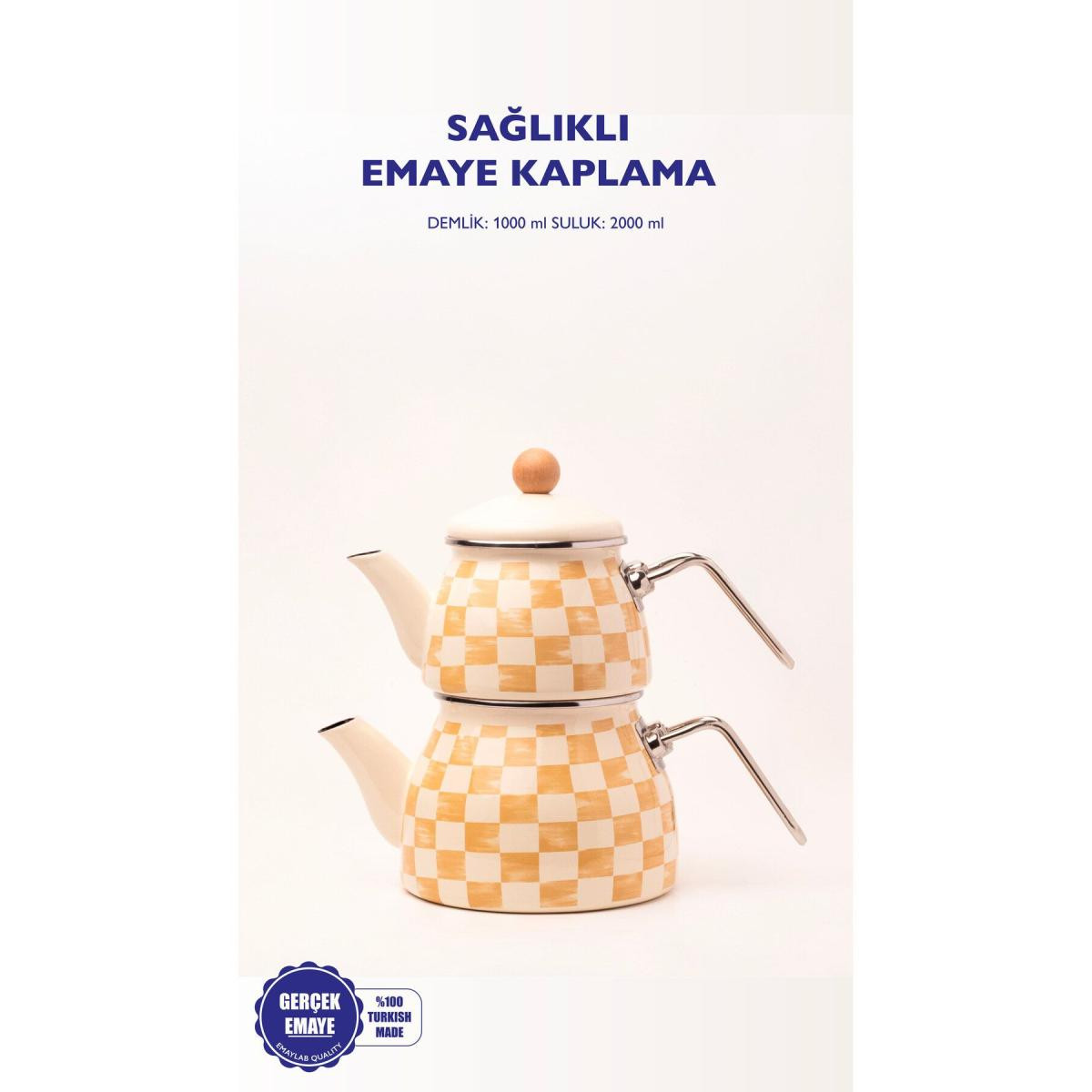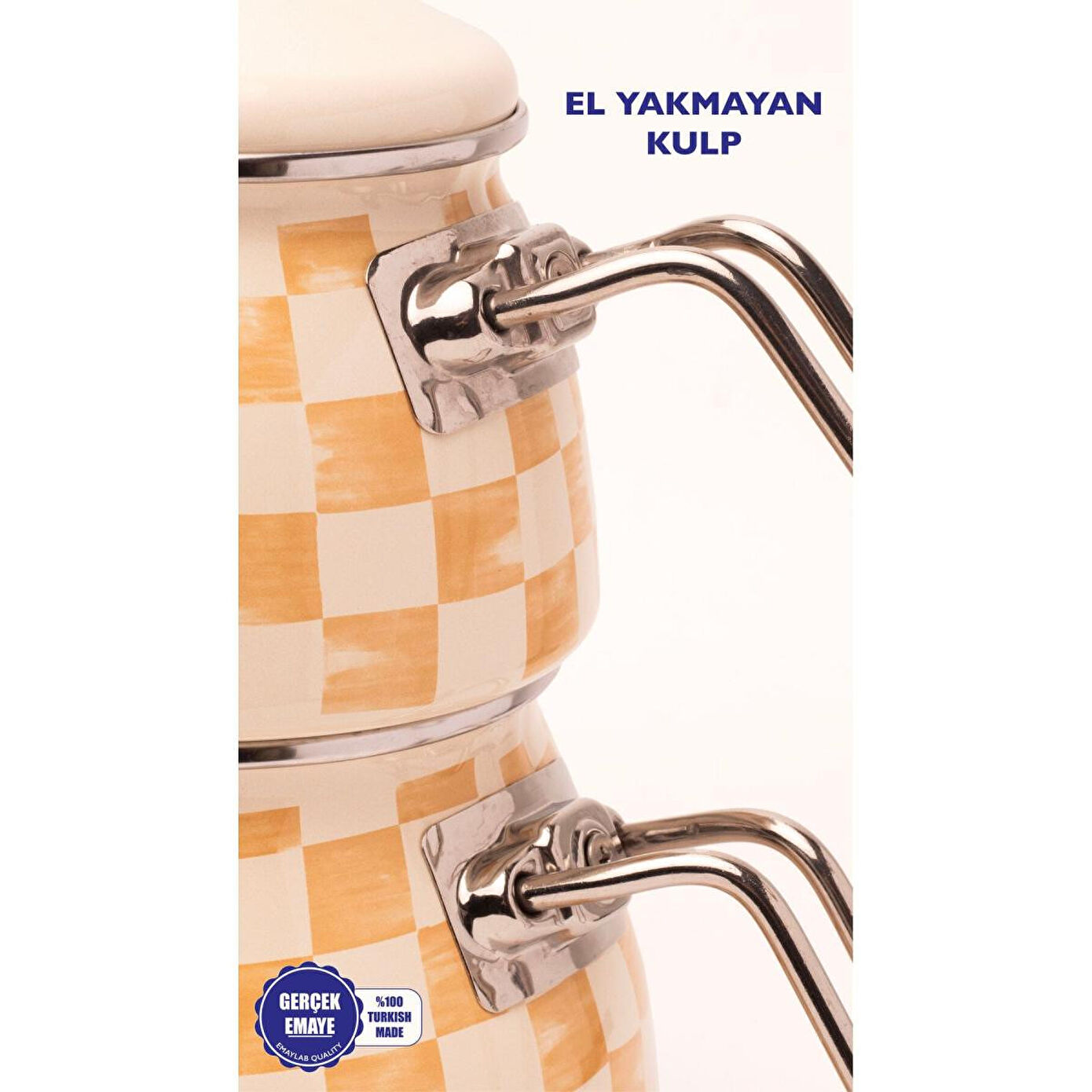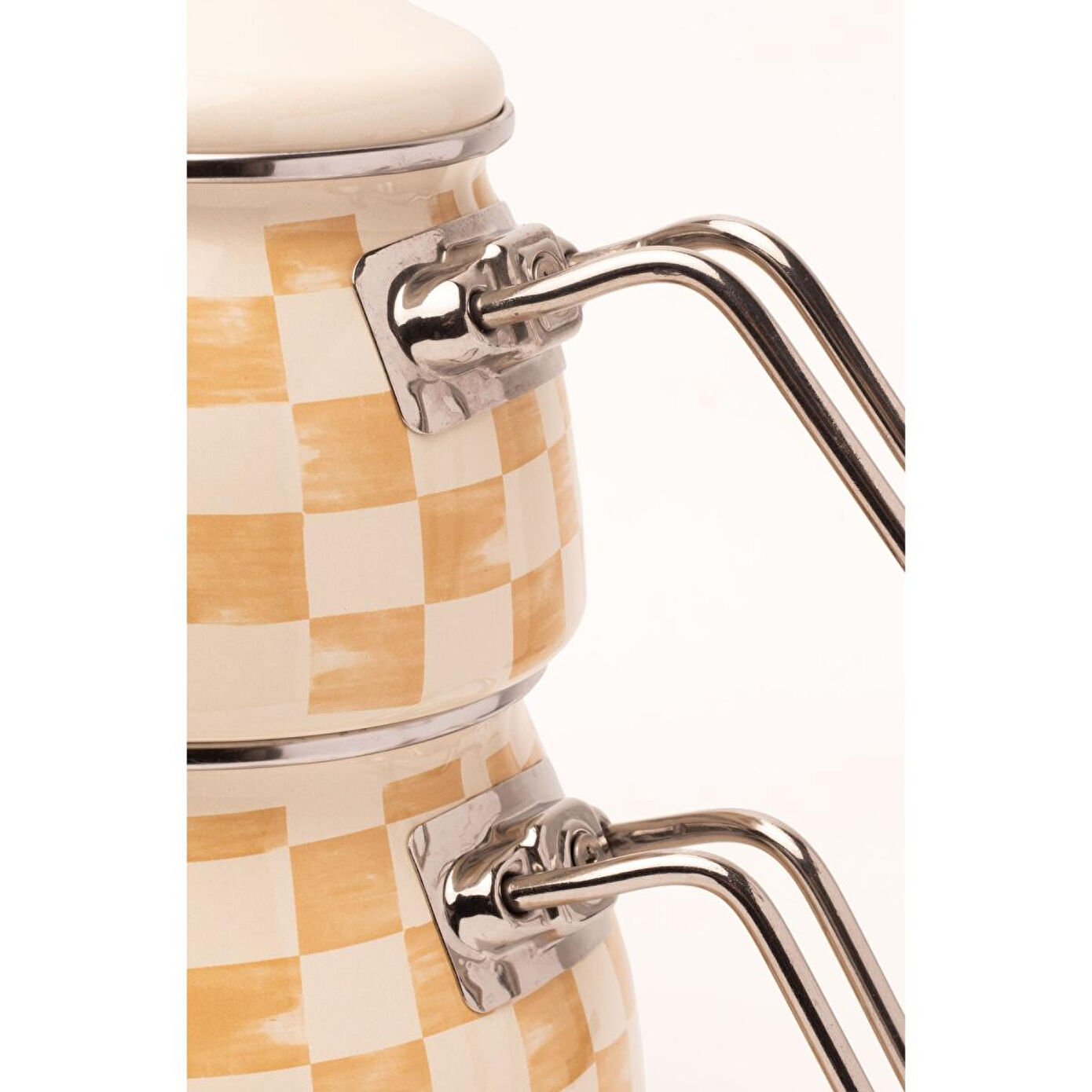 Emaylab Beige Dama Desenli Emaye Çaydanlık (tüm Ocaklara Uygun)