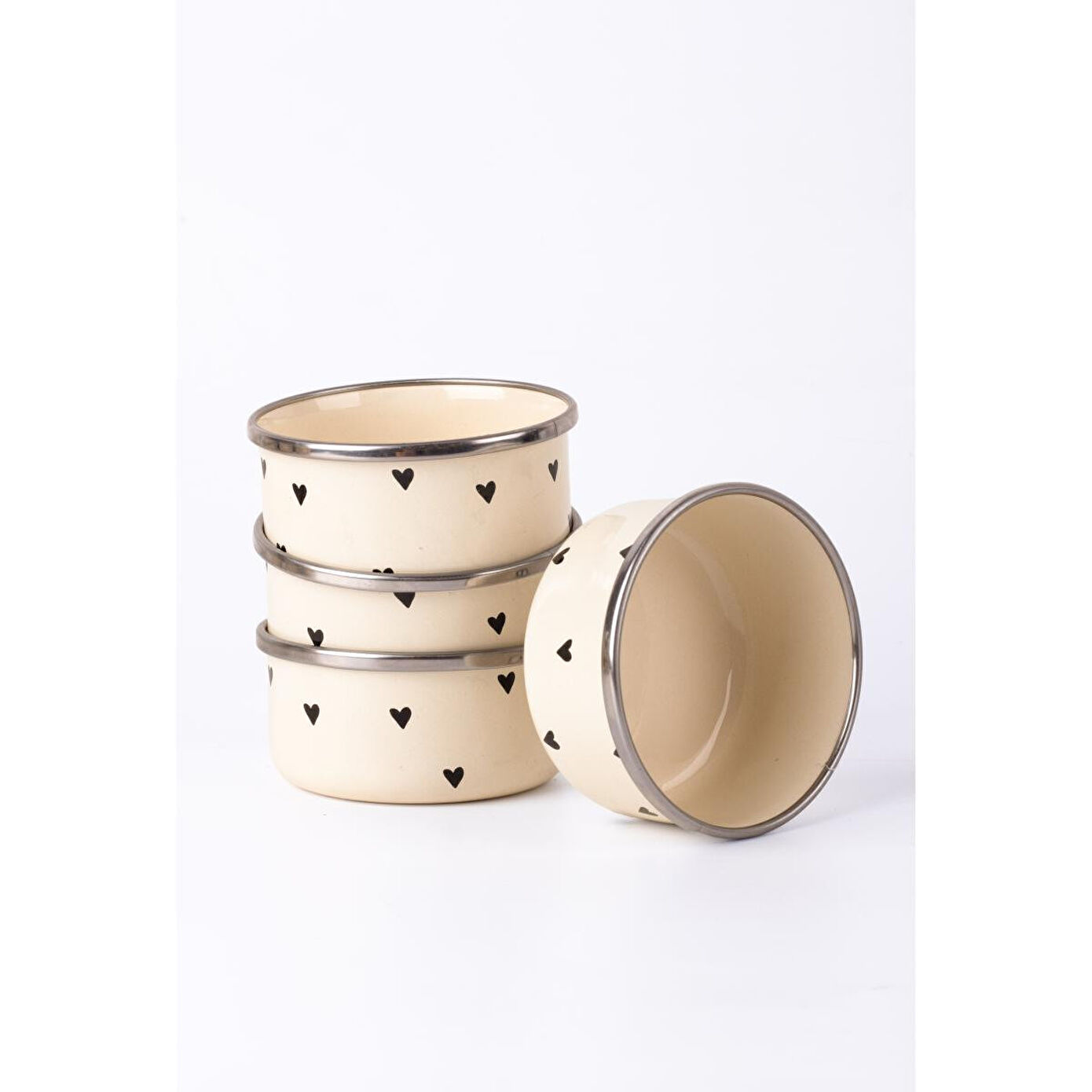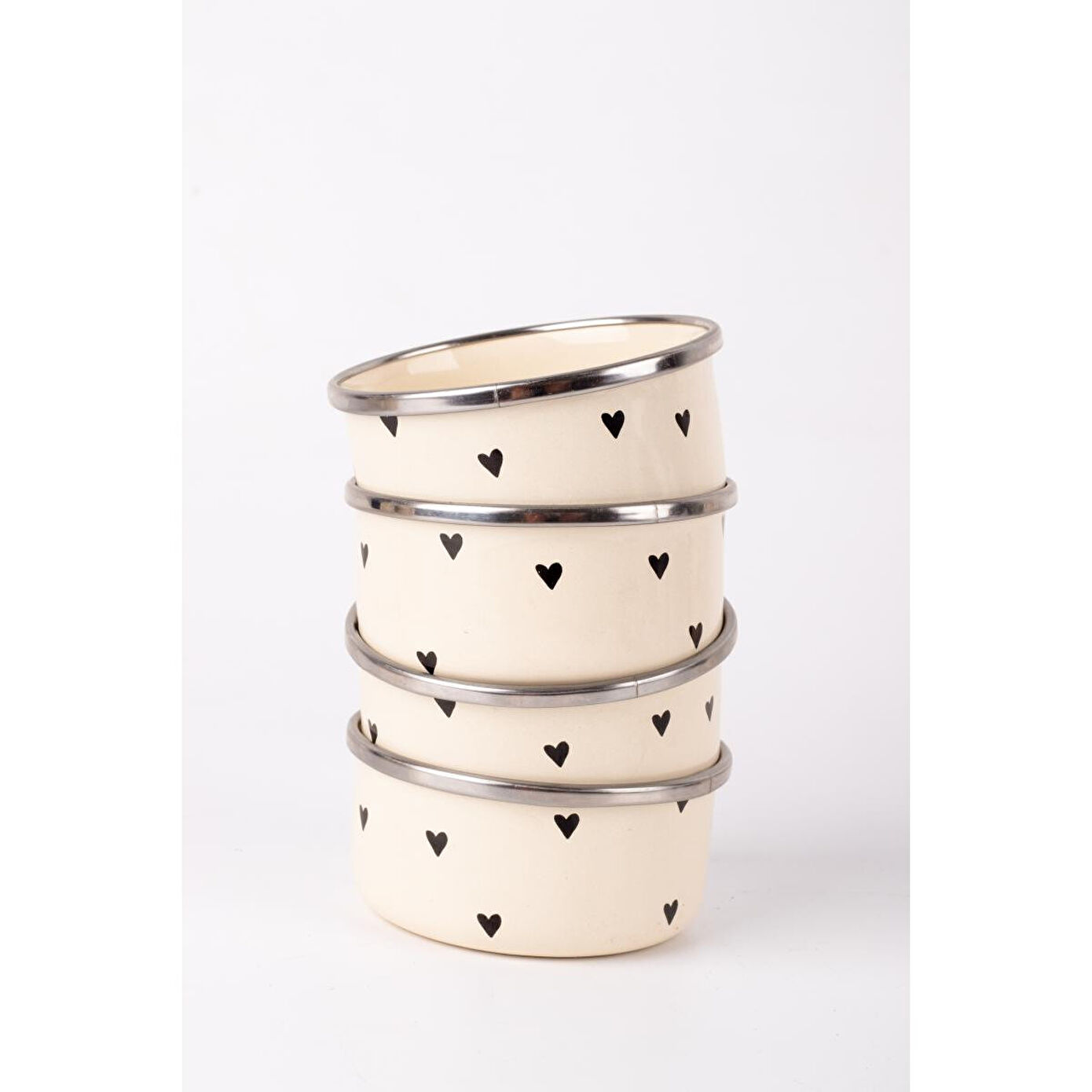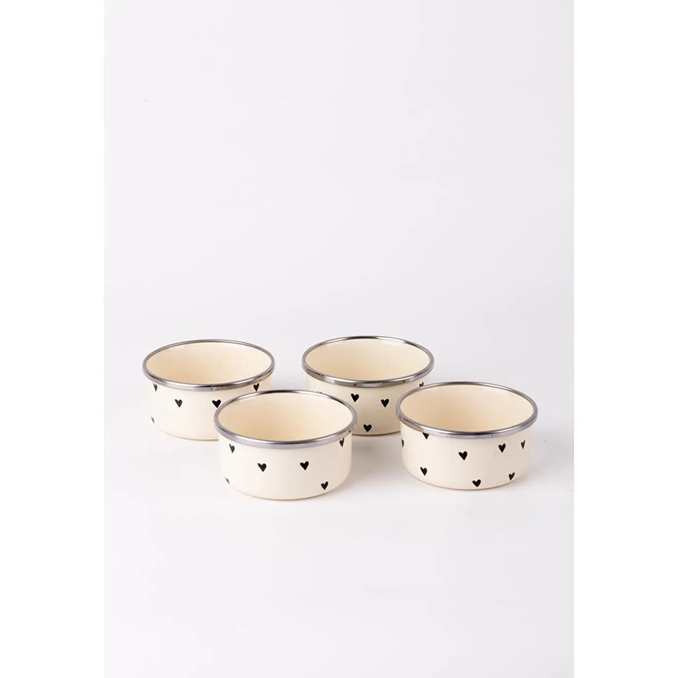 Emaylab Black Cupid Emaye 4’lü Kase Çerezlik, Kahvaltılık, Reçellik, Zeytinlik, Sunumluk Seti 8cm 200 Ml