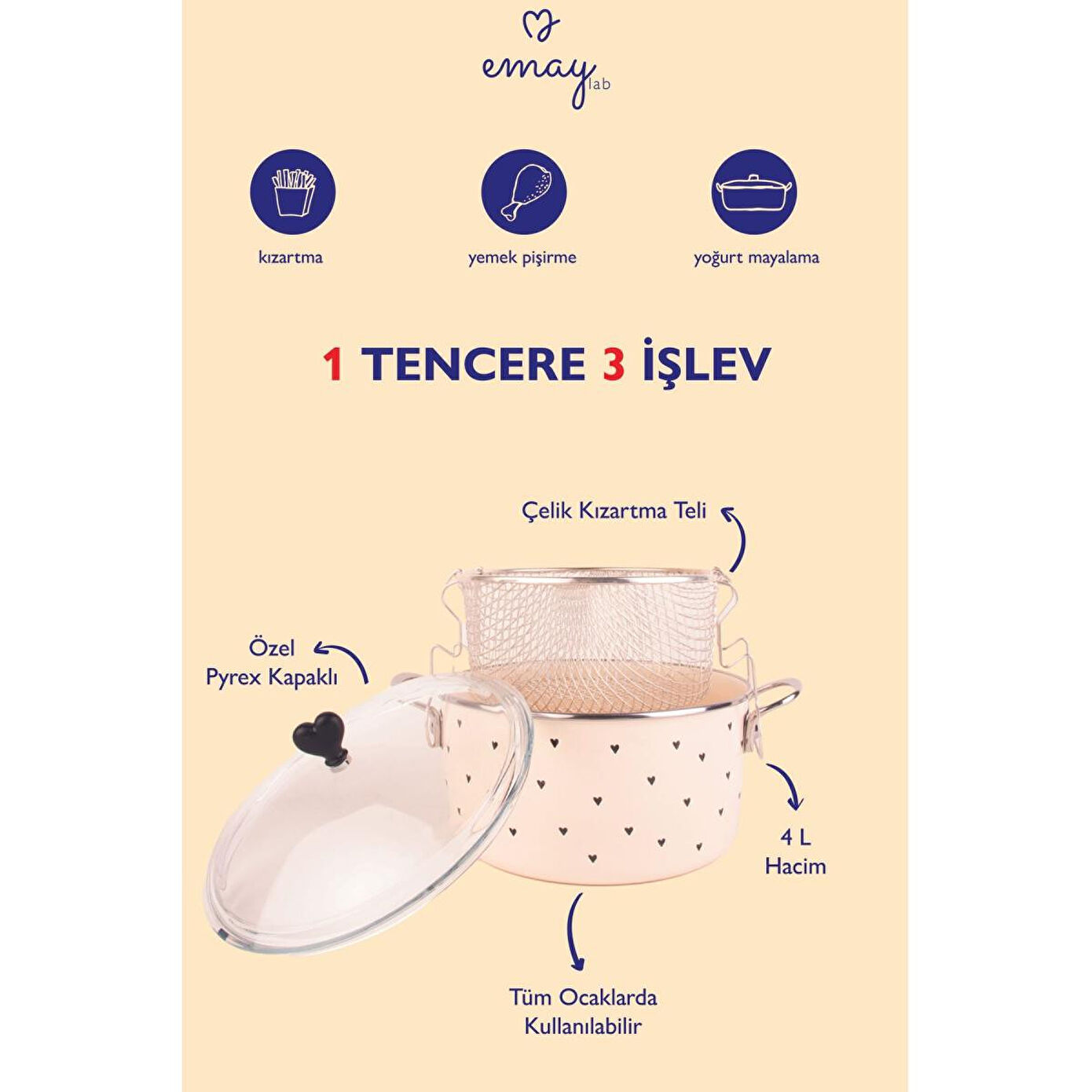İdeal Kullanım İçin Öneriler • Orta ateşte ön ısıtma yapın • Yağ seviyesini işaretli çizgide tutun • Kızartma sonrası soğumaya bırakın • Yumuşak süngerle temizleyin • Kuru bir yerde muhafaza edin This elegant **Emaylab** piece combines traditional craftsmanship with modern design, making it the perfect addition to any kitchen seeking both style and functionality.