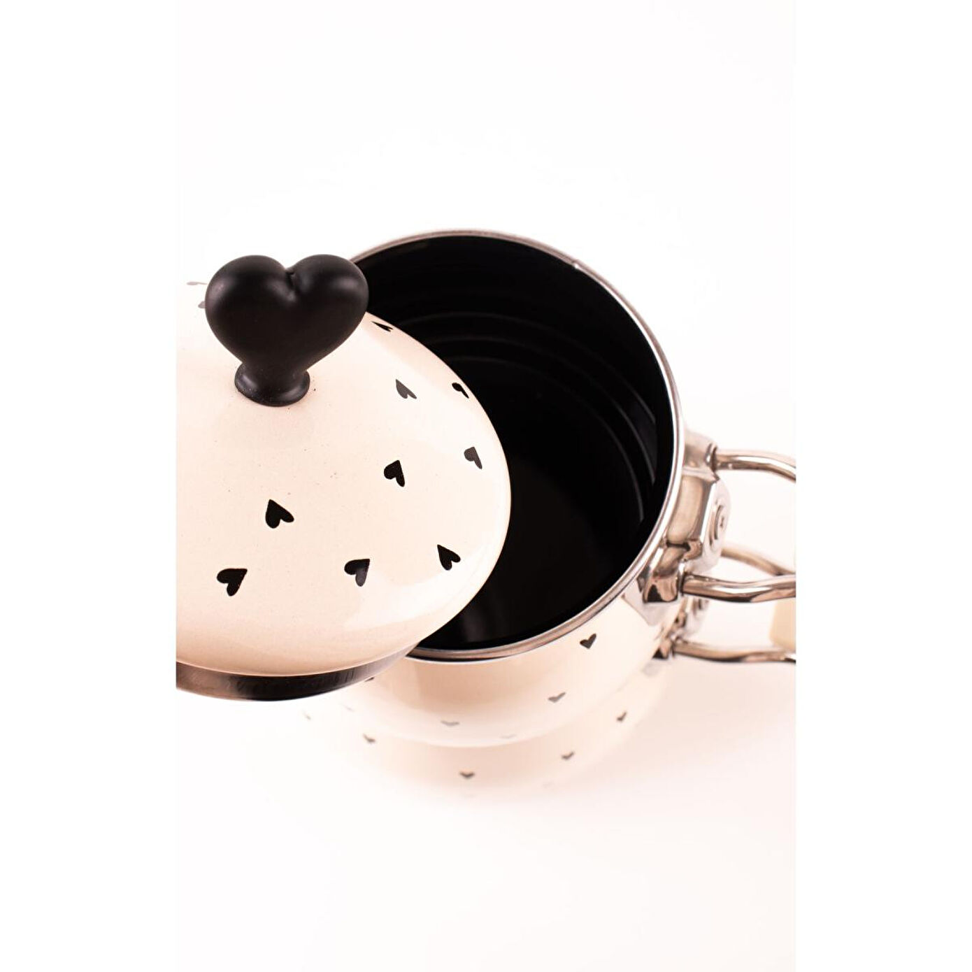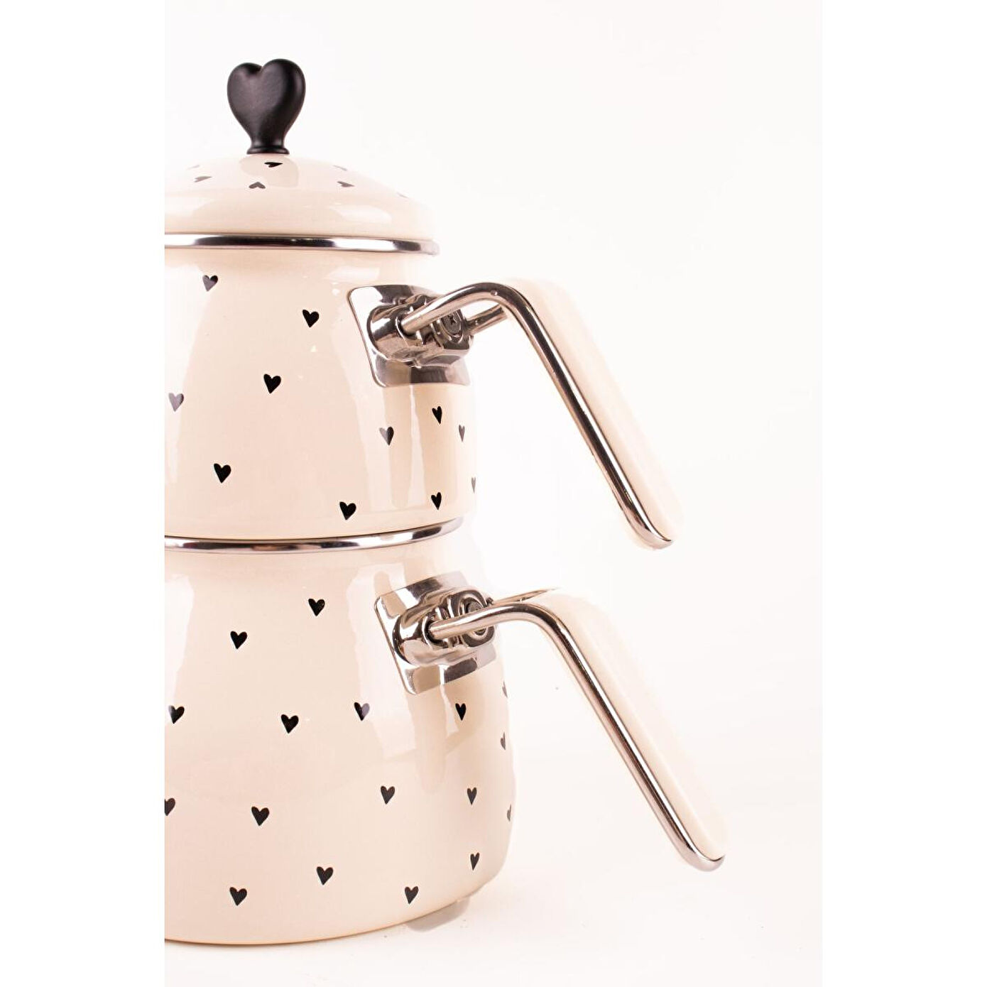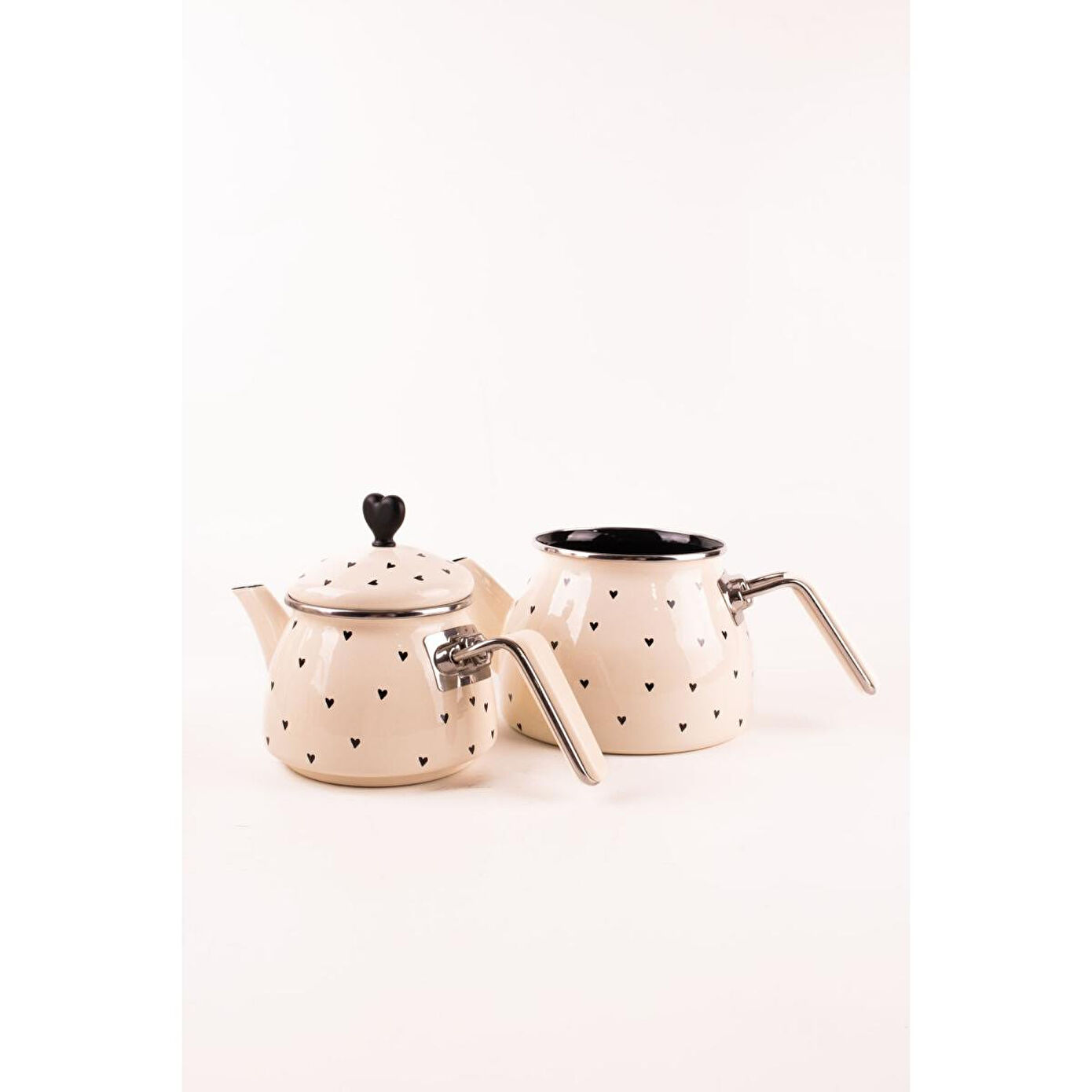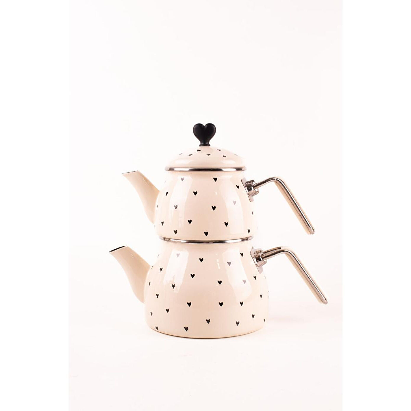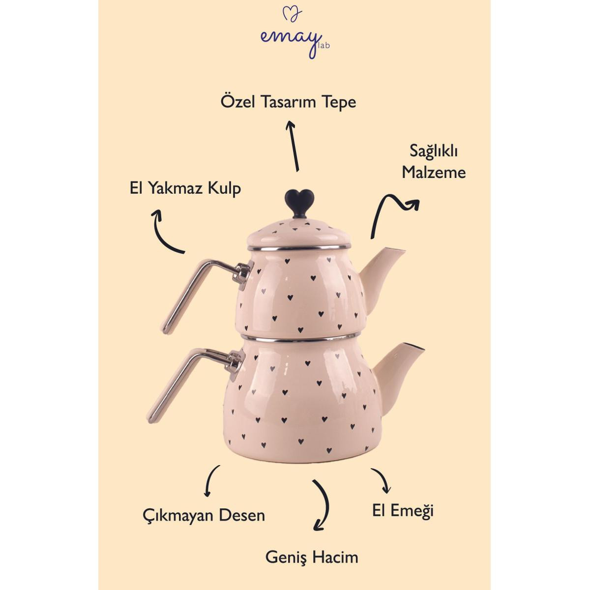 Emaylab Black Cupid Kalp Desenli Emaye Çaydanlık Takımı (özel Zamak Tepeli)