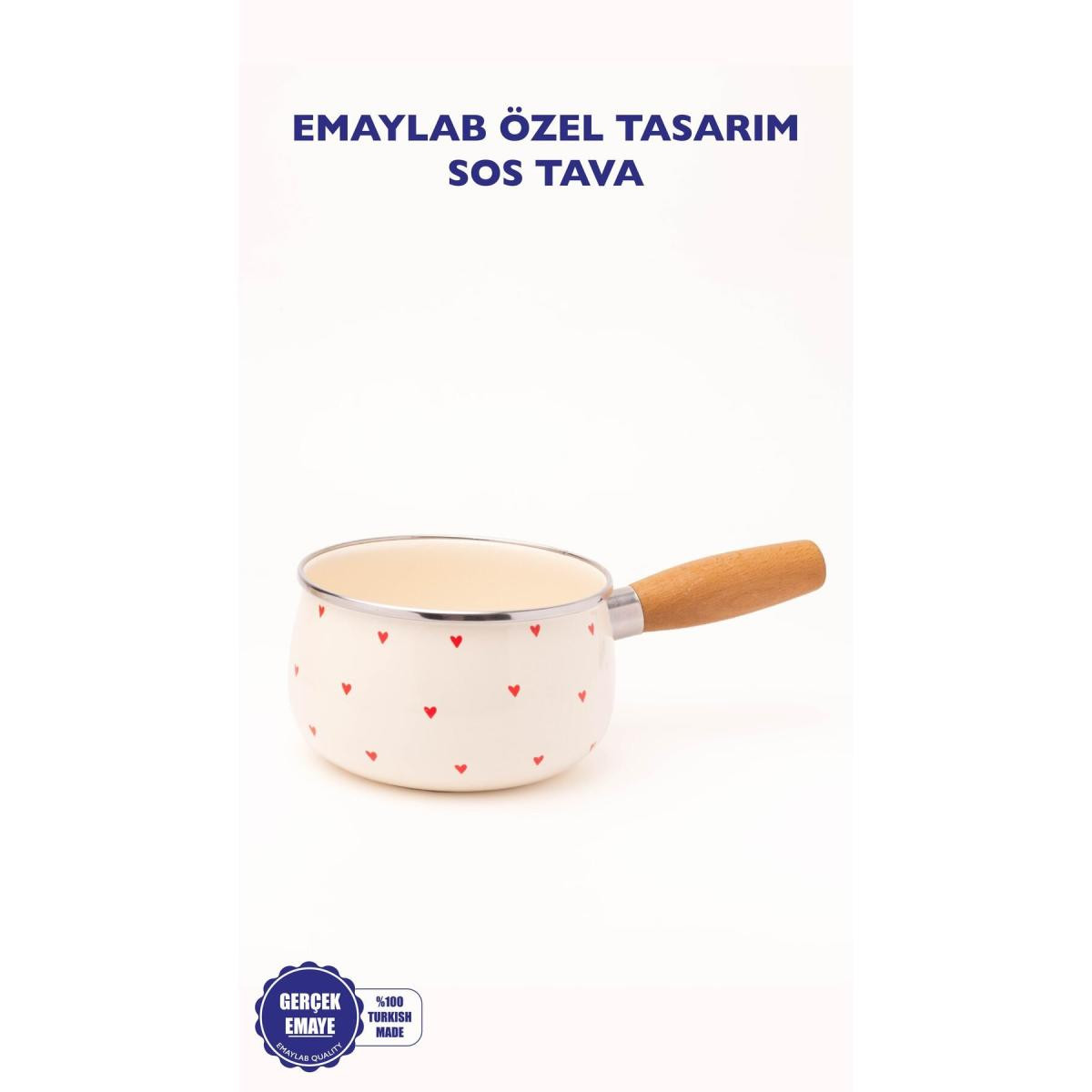 Emaylab Cupid Ahşap Saplı Kalp Desenli Emaye Sos Tavası 16cm 1,3 Litre (i̇ndüksi̇yon Dahi̇l Tüm Ocaklara Uygun)