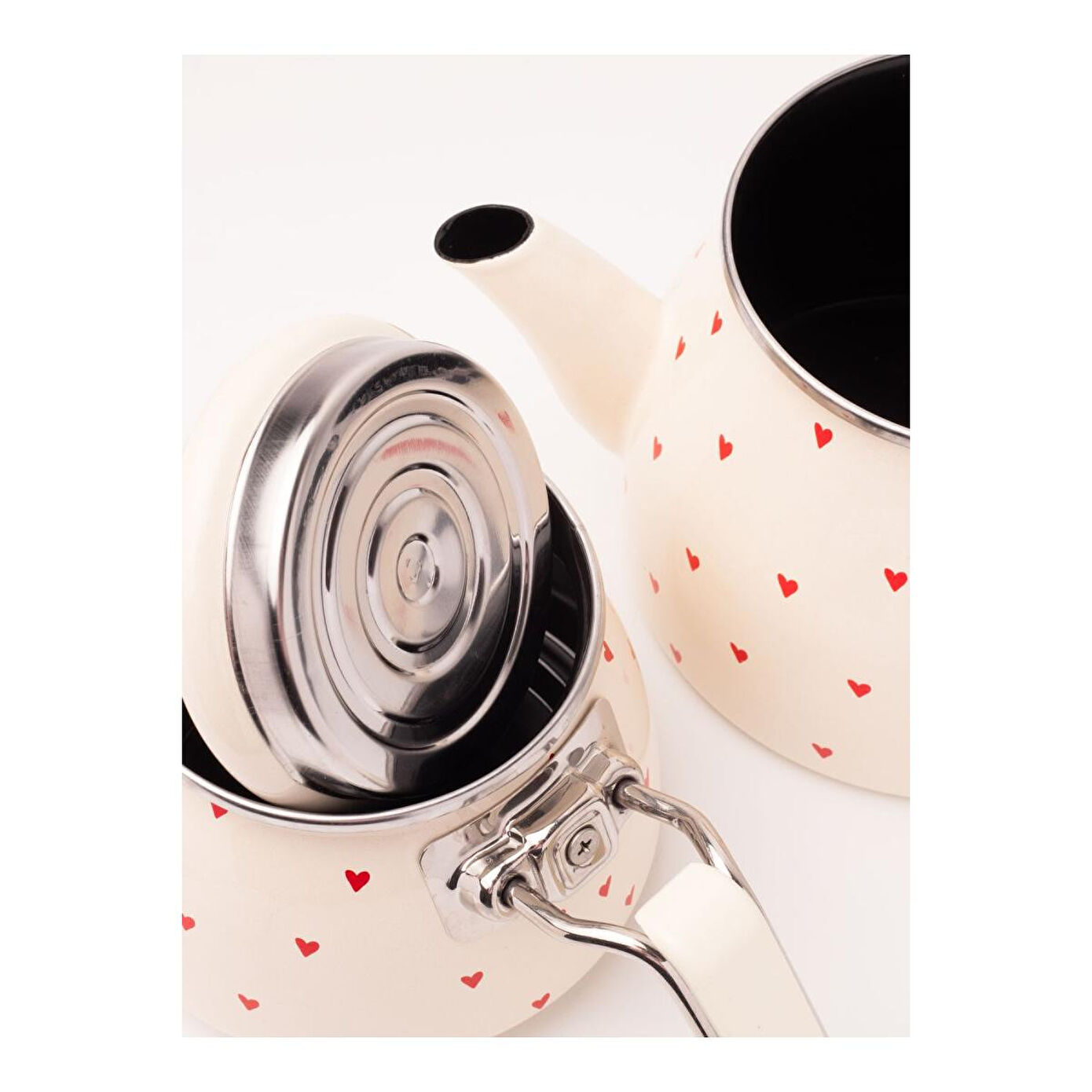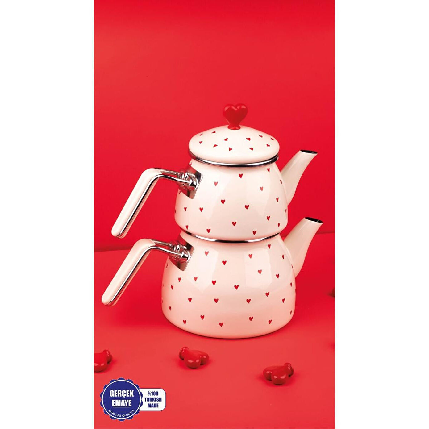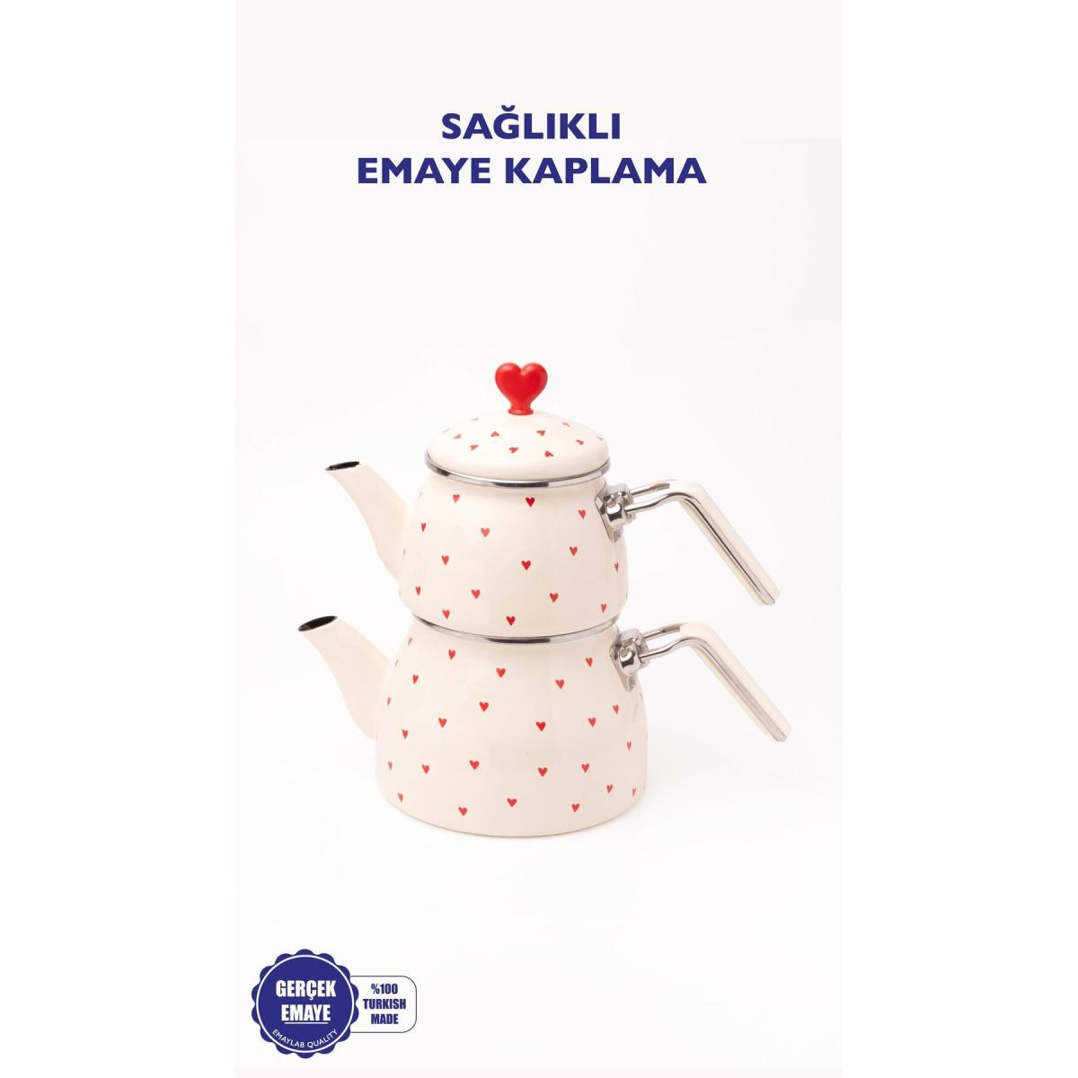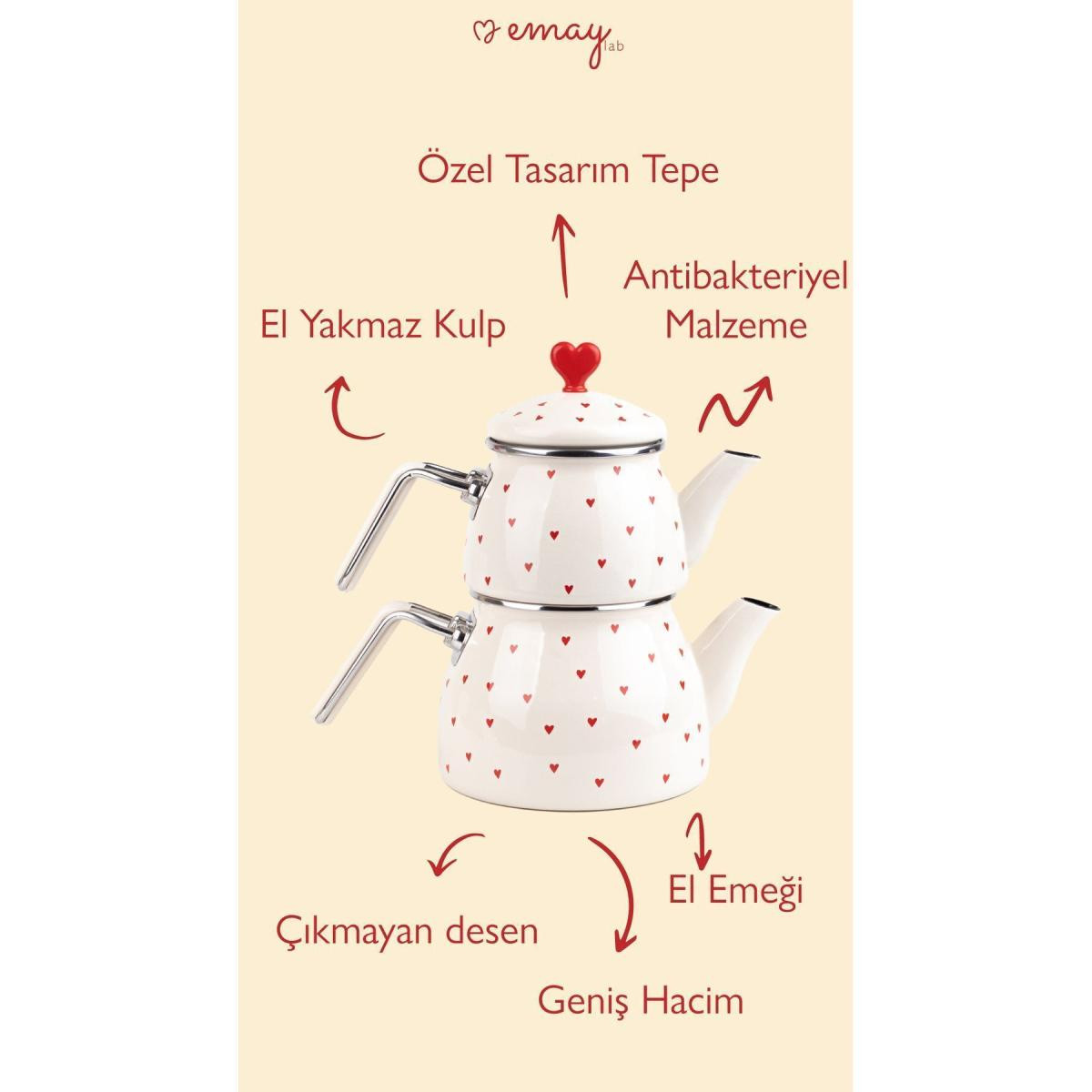 Emaylab Cupid Kalp Desenli Emaye Çaydanlık Takımı (özel Zamak Tepeli)