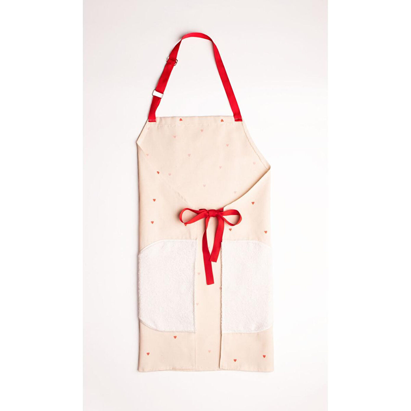 Ürün Özellikleri ve Avantajları • **100x75 cm** boyutlarıyla ideal kapsama alanı • **Kendinden havlulu** kumaş yapısı ile üstün koruma • **Ayarlanabilir askı** sistemi ile her bedene uygun • **Kalpli tasarım** ile mutfağınıza romantik dokunuş • **Yıkanabilir** ve **dayanıklı** malzeme