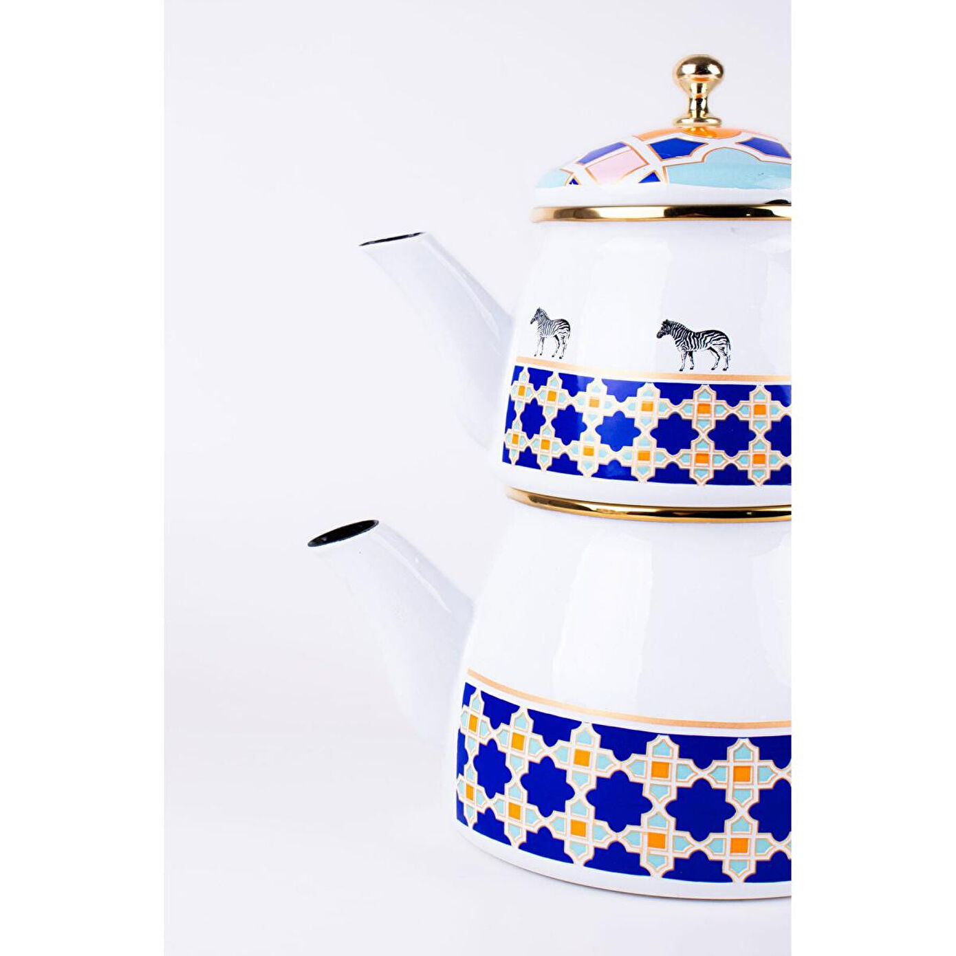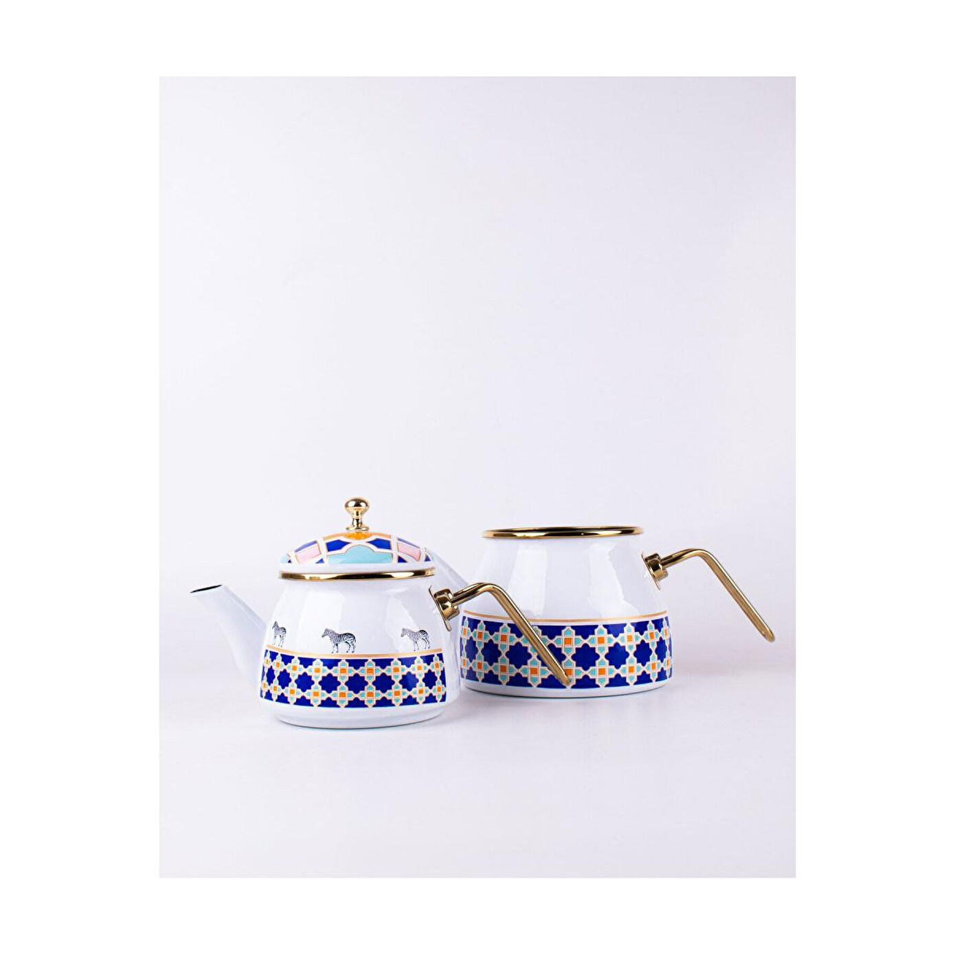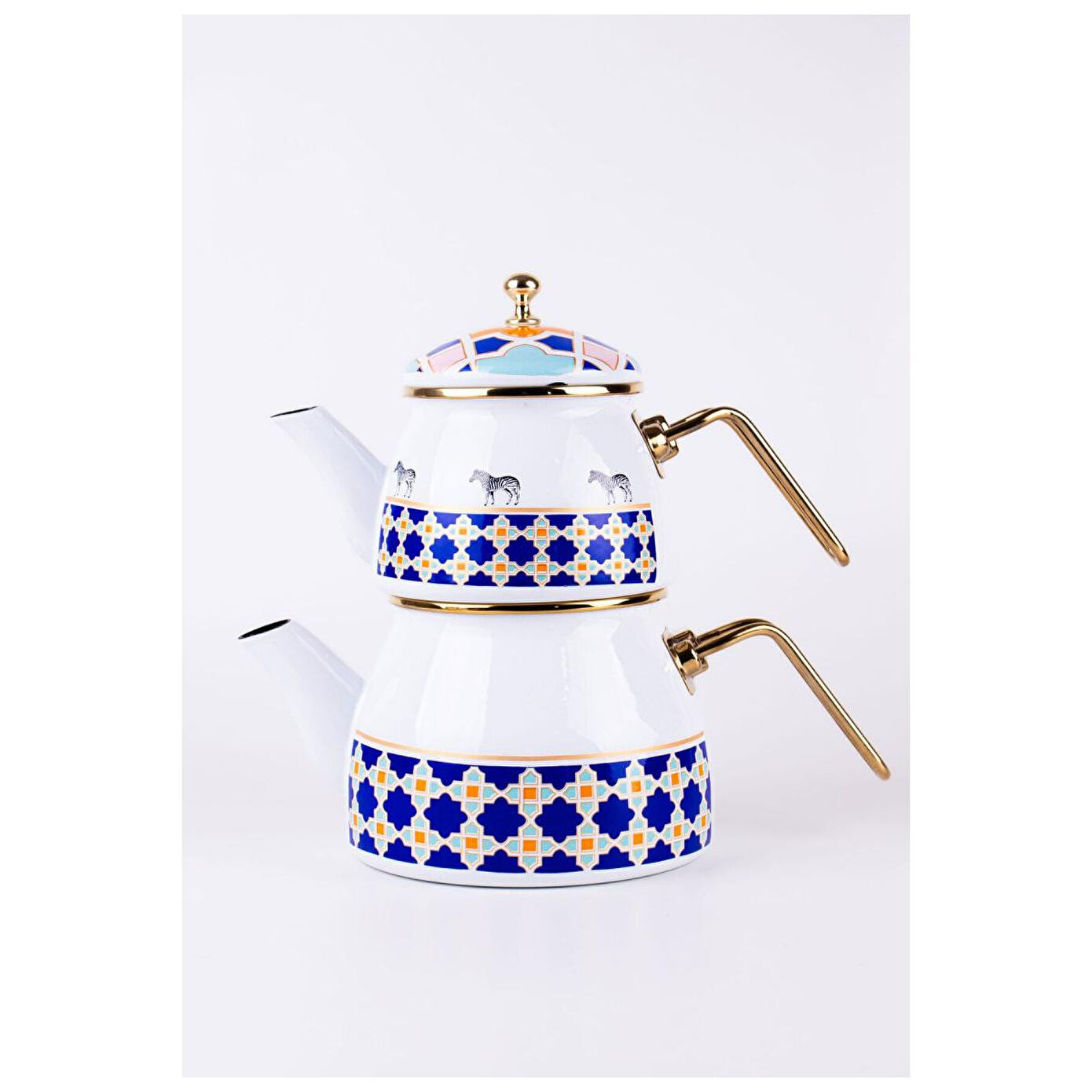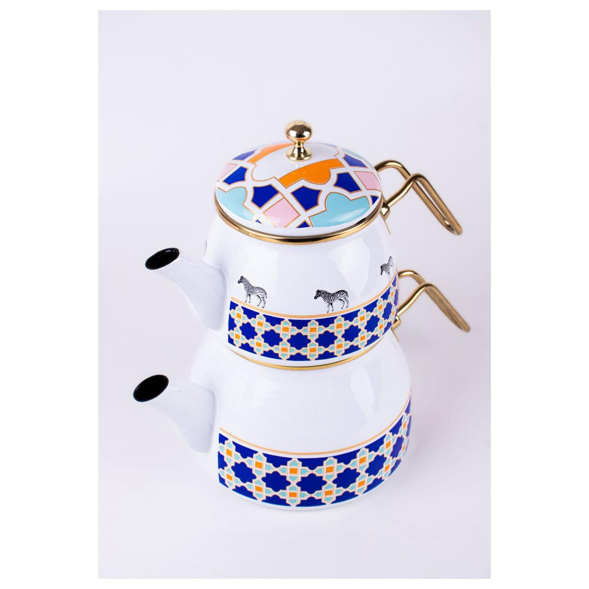 Emaylab Jaolu Zebra Desenli Emaye Çaydanlık Takımı (tüm Ocaklarda Kullanılabilir)