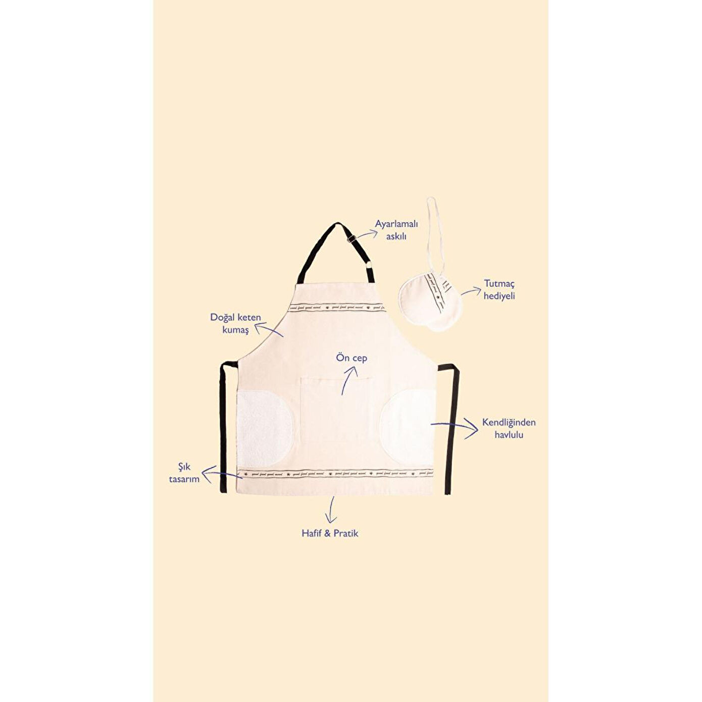 Emaylab Mood Desenli Mutfak Önlüğü Ve Tutmaç Seti (kendinden Havlulu-ayarlamalı Askılı)
