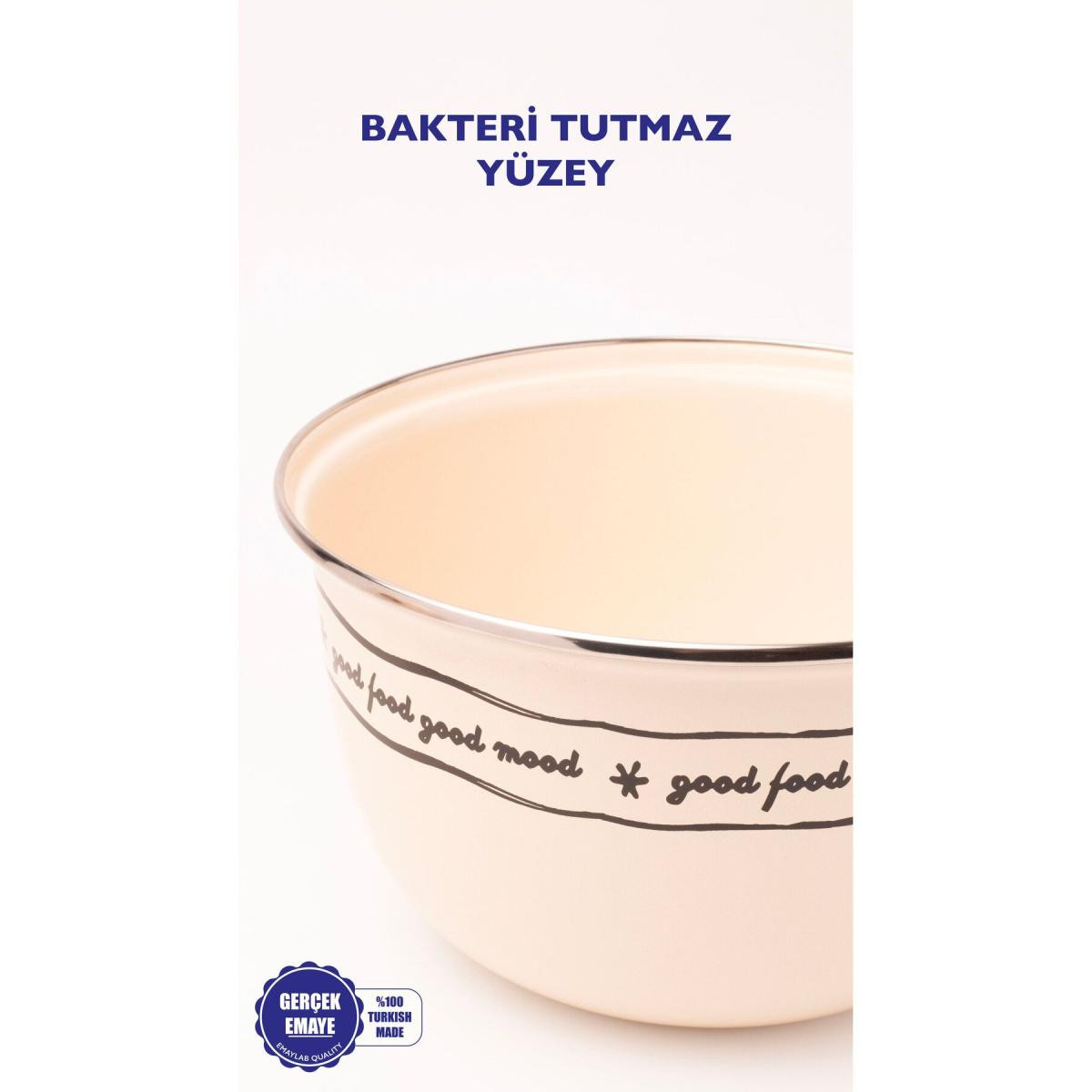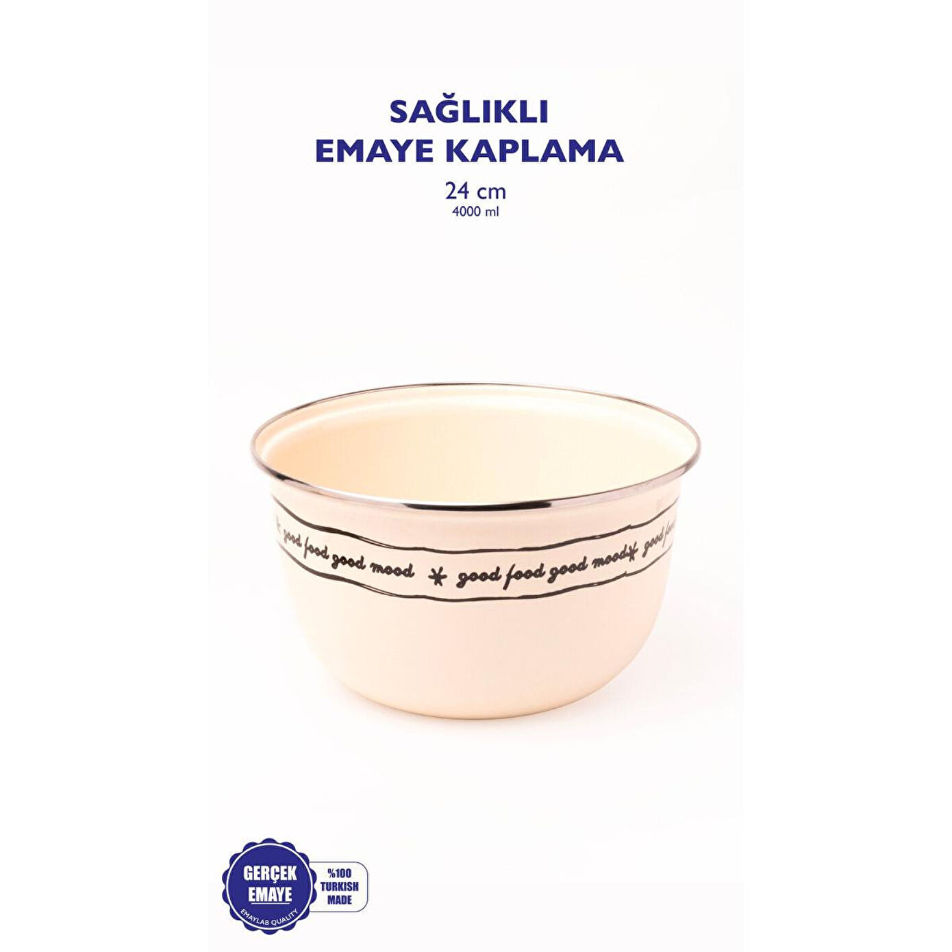 Emaylab Emaye Karıştırma ve Salata Kabı 24cm 4 Litre (Ocağa da koyulabilir) Emaylab'in en gözdesi Mood serisi ile yemek yapma keyfiniz artıyor Emaye sağlıklı ve pürüzsüz bir metaryeldir, kolay yıkanır. ; Desenleri özel ipek baskıyla üretilmiş olup uzun akmaz ve çıkmaz. ; ; Ürünlerimiz el işçiliği ile üretilmektedir. ; ; Yüzeyinde el üretiminin doğasından ortaya çıkan farklılıklar nedeniyle her ürün benzersizdir ve birbirleri arasında hafif farklar olabilir. ; ; Tüm ürünlerimiz makinede yıkamaya uygundur fakat daha uzun kullanım için elde yıkayıp, el bezi ile kurulamanızı öneririz. ; ; Her zaman tahta veya silikon kaşıkla kullanmalı, çizilmeyecek şekilde temizlemelisiniz. ;