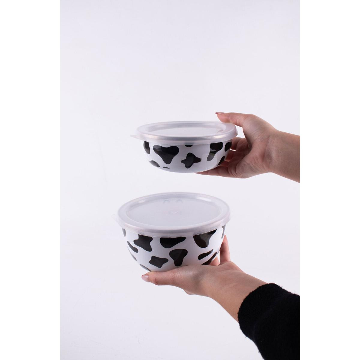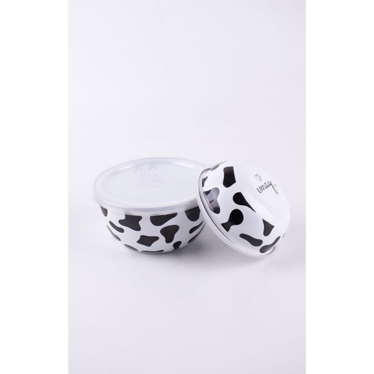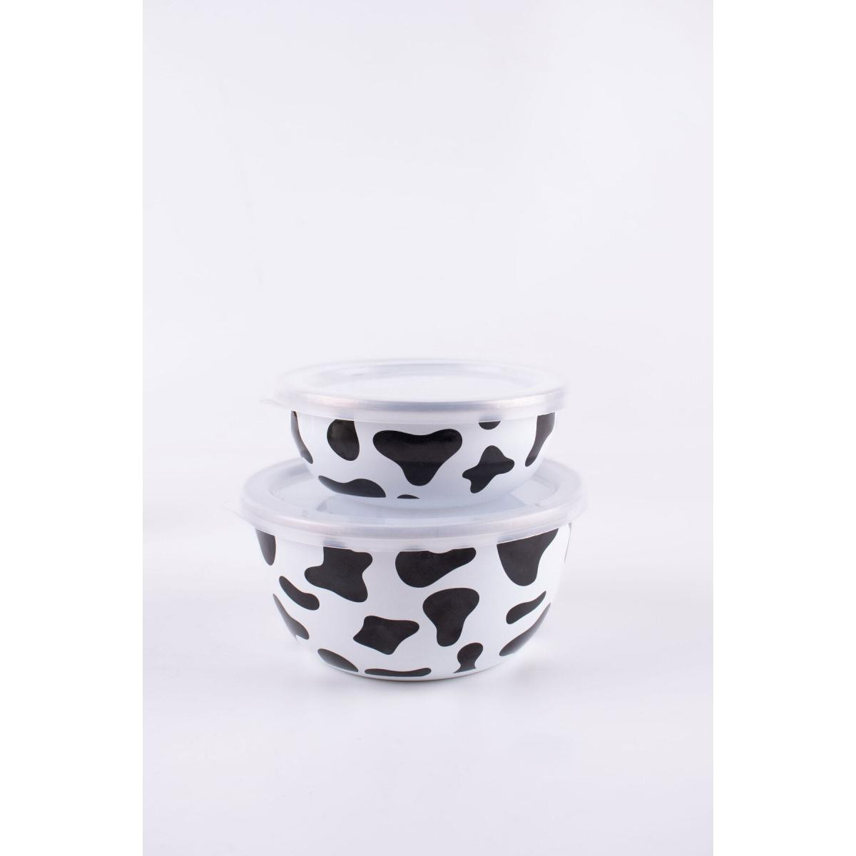 Beyaz Emaylab Saklama Kabı Mötilda Emaye İnek Desenli Kase Seti: Mutfağınızın Sevimli ve Fonksiyonel Yardımcısı