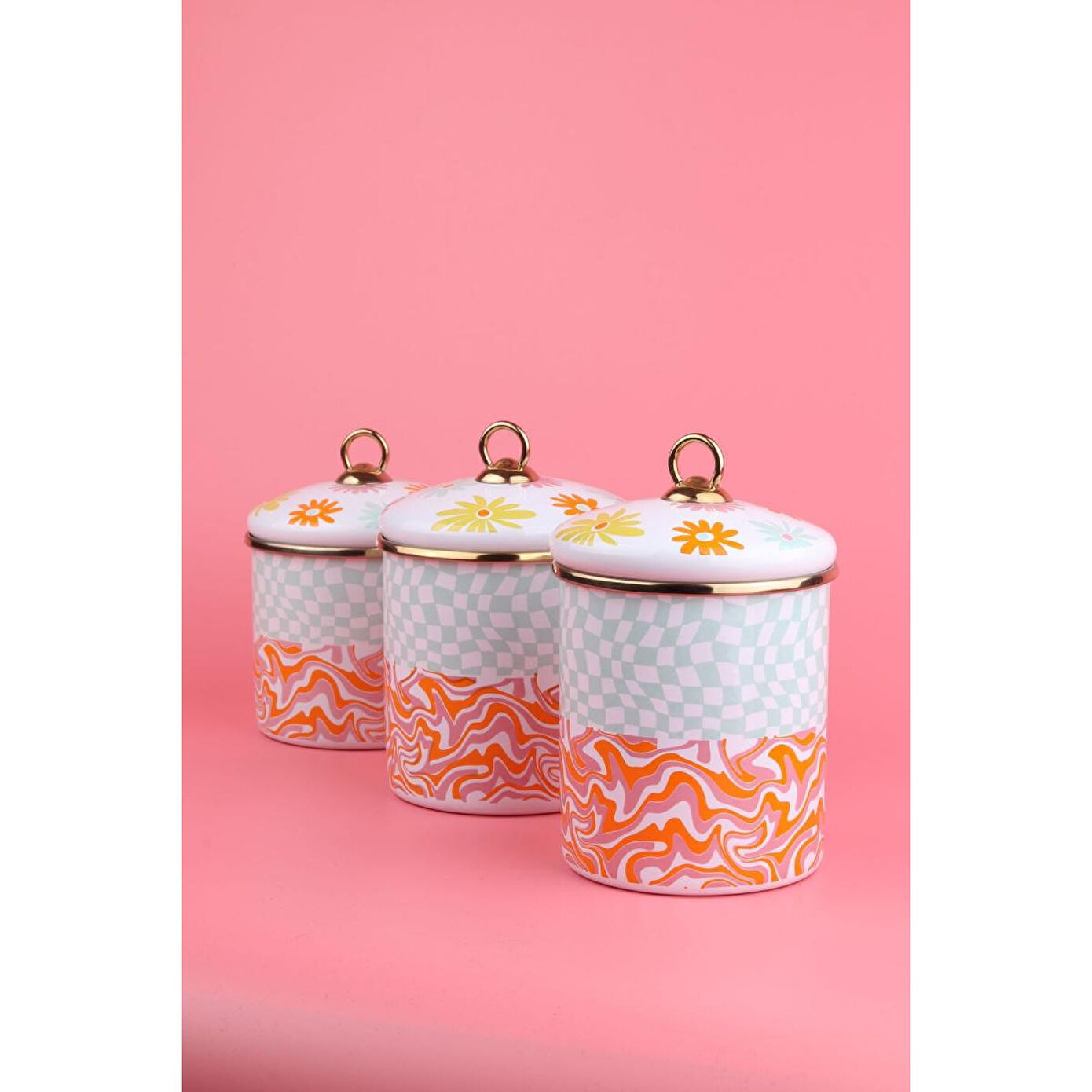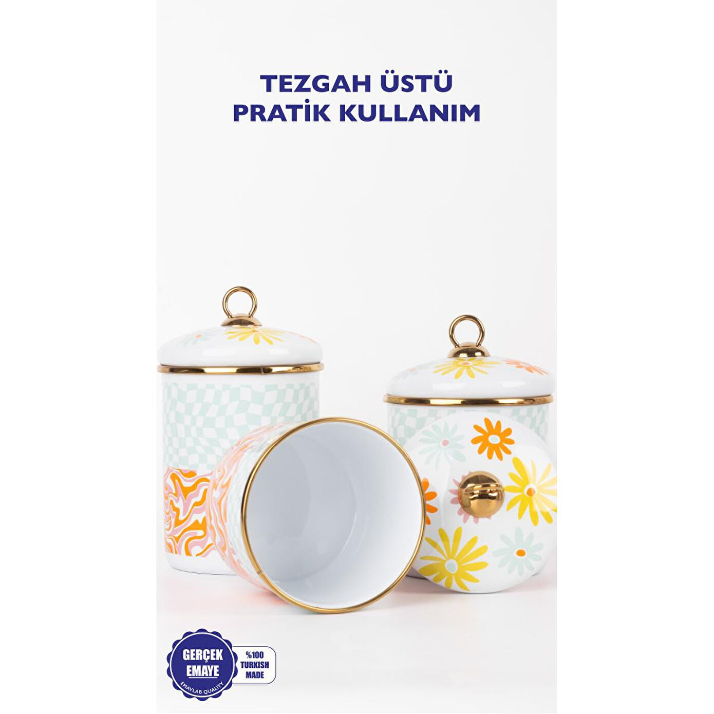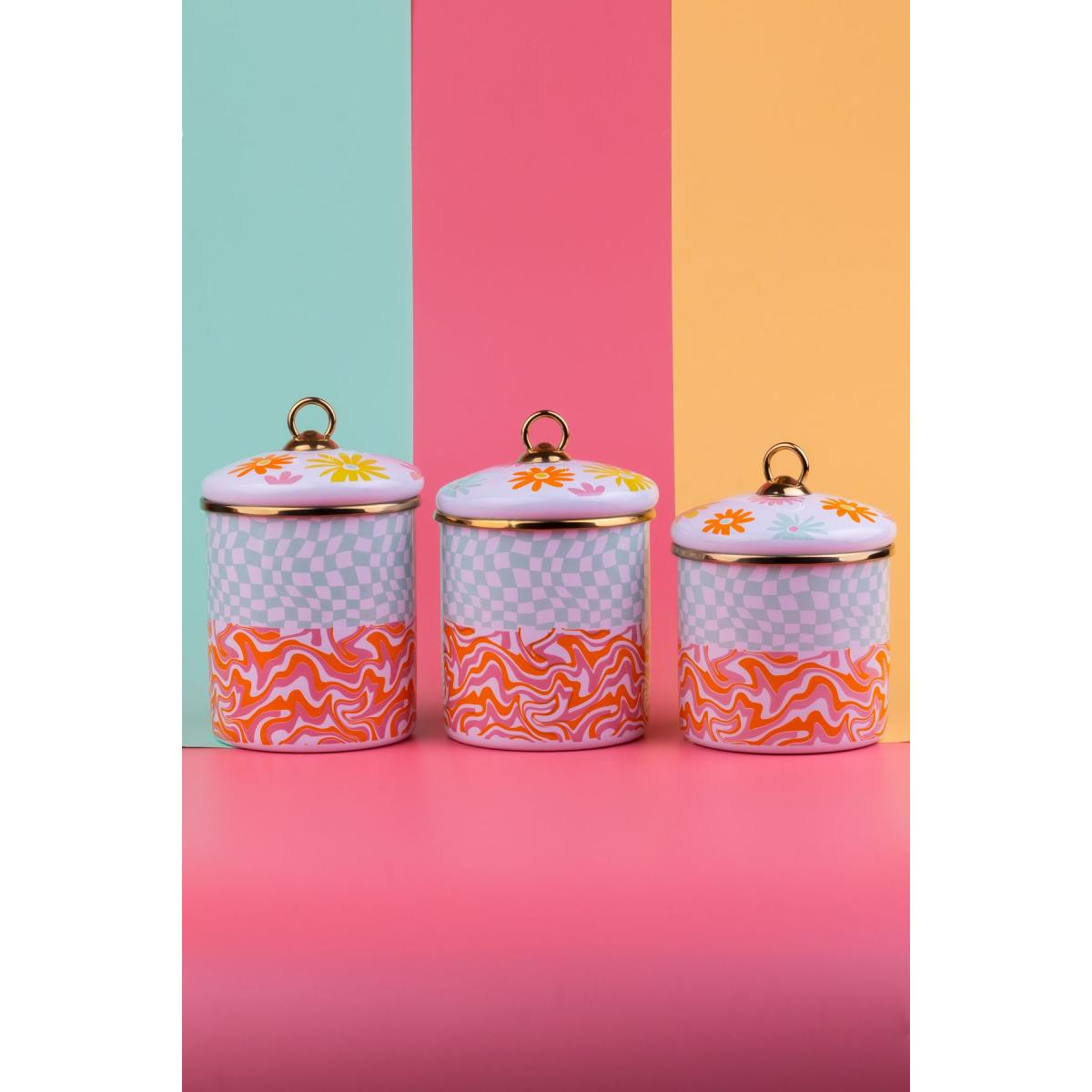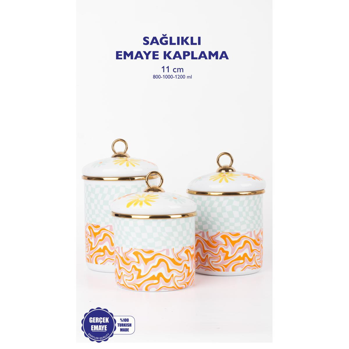 EMAYlab Retro Hippi 3 lü Emaye Kavanoz, vazo ; Ürün Ölçüleri: ; Yükseklik: 10 cm - 12 cm - 14 cm ; Ürün Çapı: 11 cm ; Emaye sağlıklıdır.; Renkleri özel baskılıdır solmaz.; ; Ürünlerimiz el işçiliği ile üretilmektedir.; ; Yüzeyinde el üretiminin doğasından ortaya çıkan farklılıklar nedeniyle her ürün benzersizdir ve tek tek kalite kontrolü yapılmaktadır.; ; Tüm ürünlerimiz makinede yıkamaya uygudur fakat daha uzun kullanım için elde yıkayıp, el bezi ile kurulamanızı öneririz.; ; Her zaman tahta veya silikon kaşıkla kullanmalı, çizilmeyecek şekilde temizlemelisiniz.; ; Kaplaması çizilip yıpranmadığı takdirde yıllarca kullanabilirsiniz.; ; Hediye için uygundur.; ;