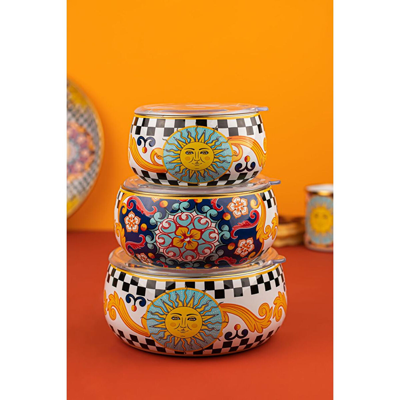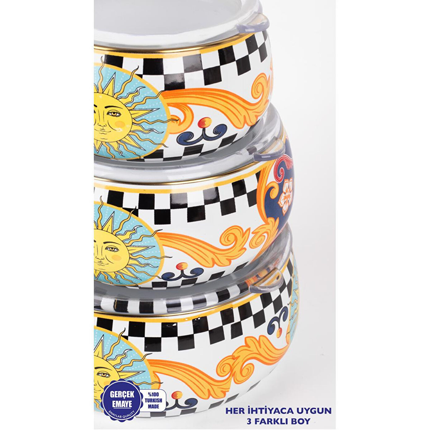 Emaylab Misharu3 Lü Emaye Tombul Saklama Kabı Takımı (tüm Ocak Tiplerinde Kullanilabilir)