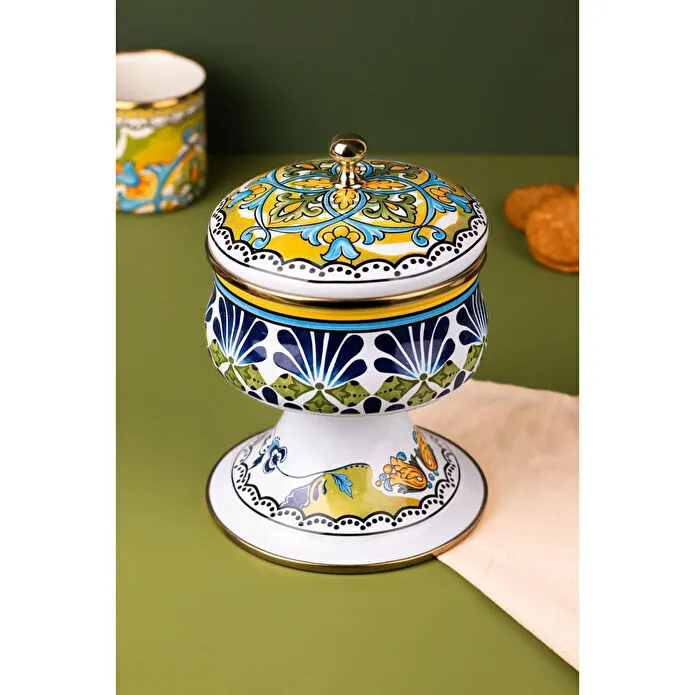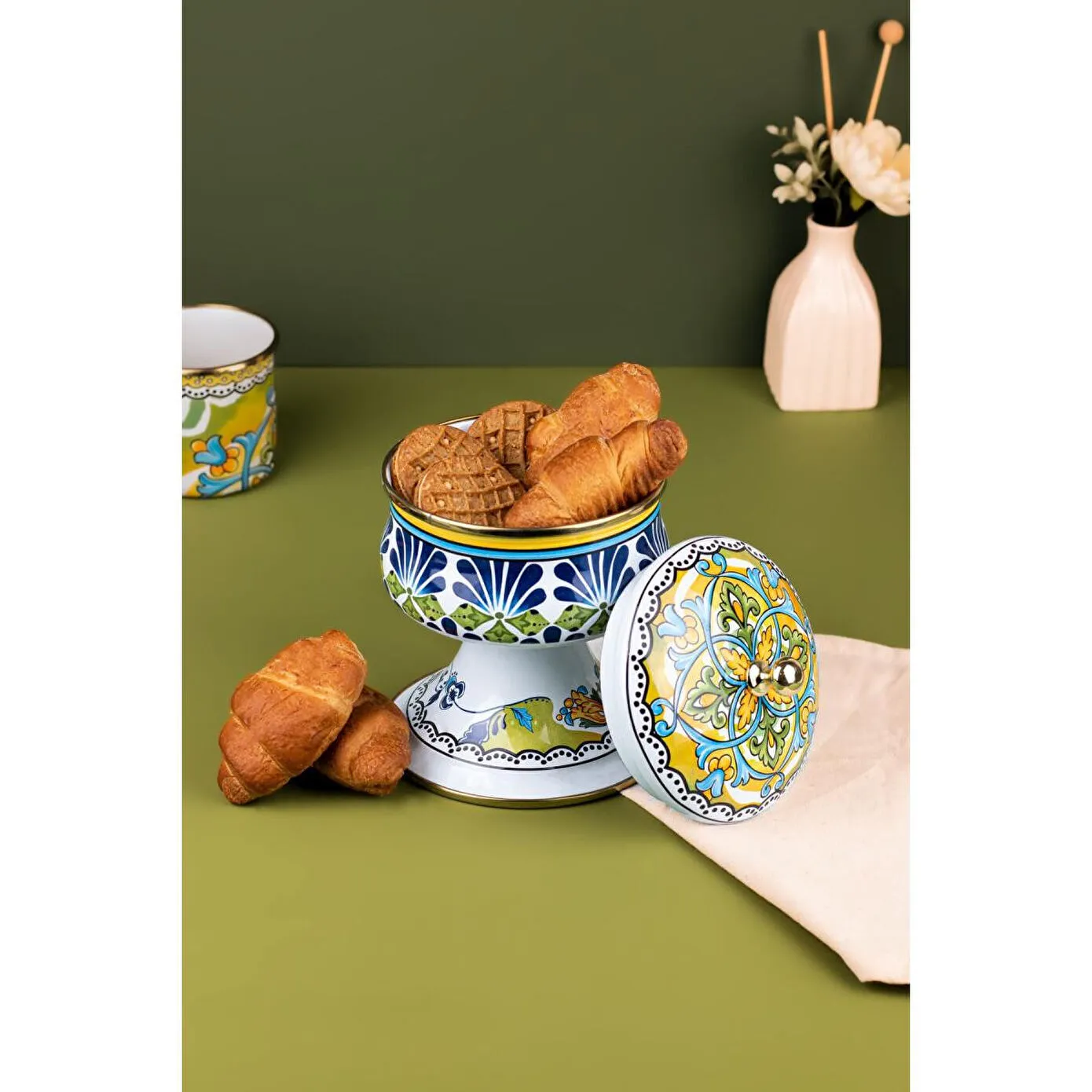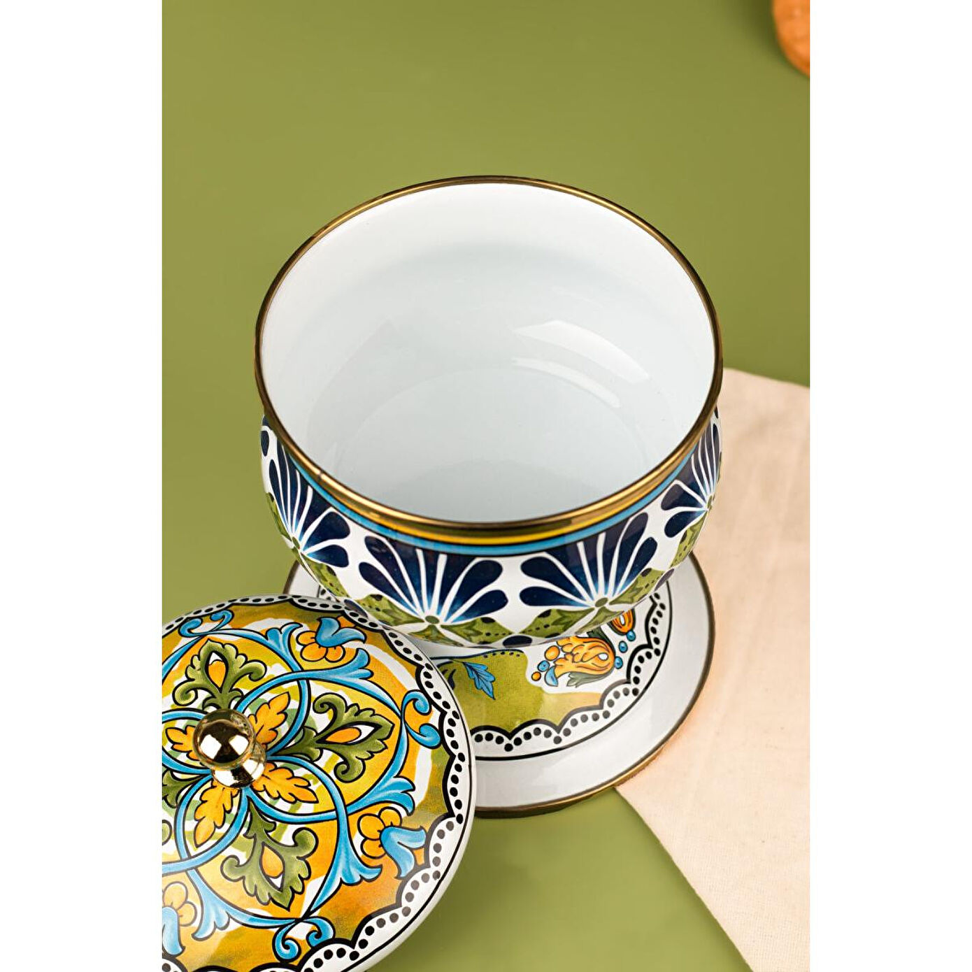 Emaylab Selge Dekoratif Emaye Kapaklı Şekerlik, Çikolata Sunumu, Çerezlik