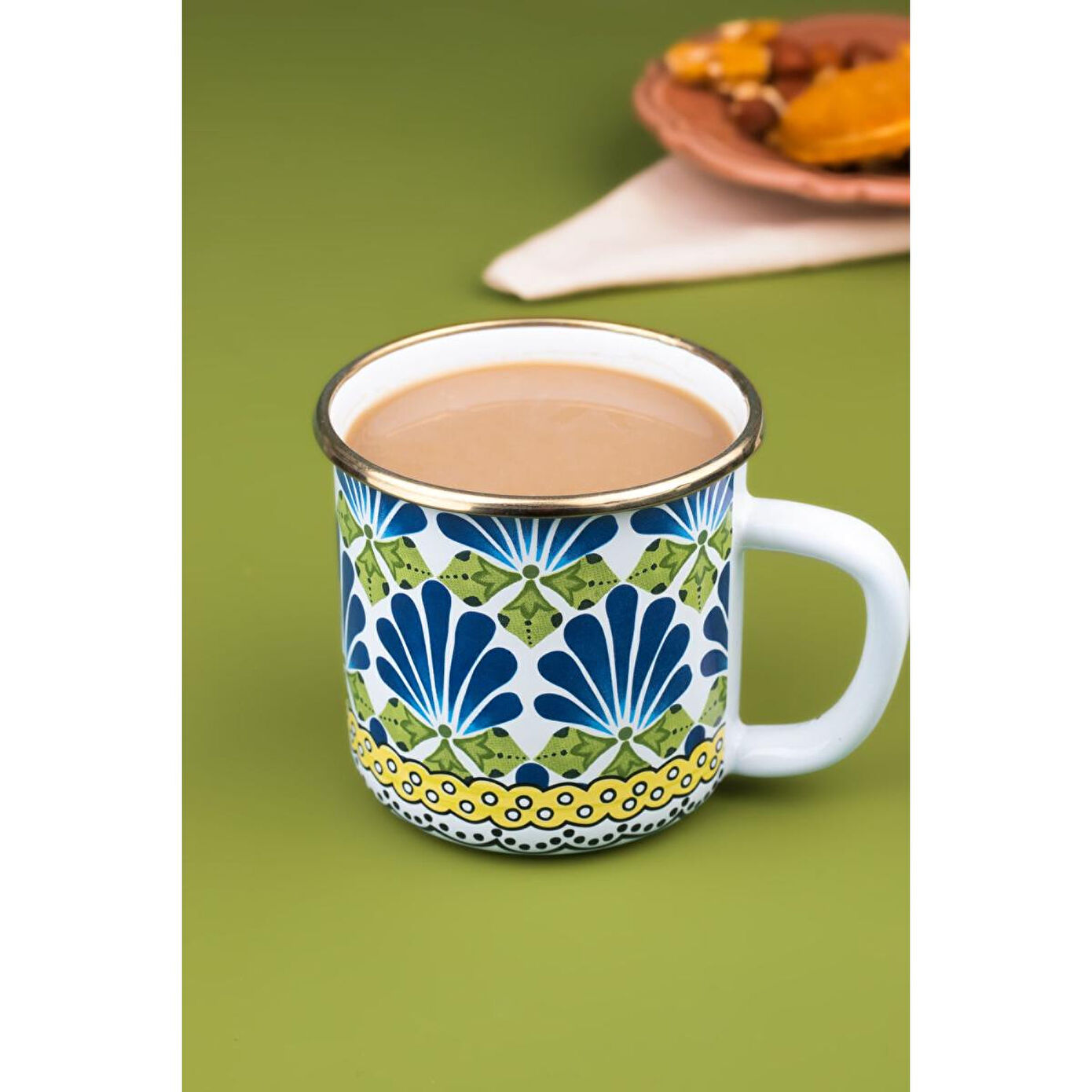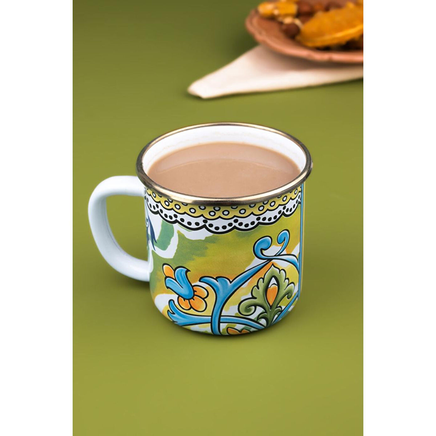 Özel Tasarım Emaye Kupa ; Ürün Ölçüleri: ; 8 cm ; 400 ml ; Emaye sağlıklıdır.; Renkleri özel baskılıdır solmaz, akmaz ve çıkmaz.; ; Ürünlerimiz el işçiliği ile üretilmektedir.; ; Yüzeyinde el üretiminin doğasından ortaya çıkan farklılıklar nedeniyle her ürün benzersizdir.; ; Tüm ürünlerimiz makinede yıkamaya uygundur fakat daha uzun kullanım için elde yıkayıp, el bezi ile kurulamanızı öneririz.; ; Her zaman tahta veya silikon kaşıkla kullanmalı, çizilmeyecek şekilde temizlemelisiniz.; ; ;