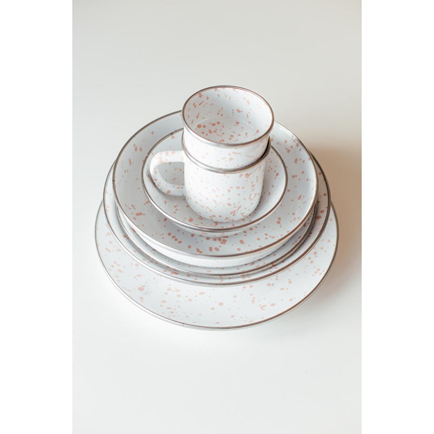 Her parça, ustaların elinden çıkan özgün bir sanat eseri. Emaye yüzeylere geleneksel el tekniğiyle sıçratılan desenler, noktasal dokusuyla dinamizmi ve zarafeti buluşturuyor. Hiçbir ürün bir diğerinin aynısı değil; her biri sofralarınıza benzersiz bir karakter kazandırmak ve estetik bir dokunuş için tasarlandı.