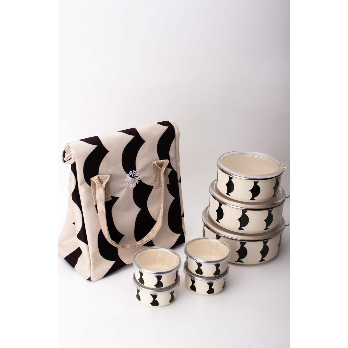 Emaylab’in sağlıklı ve uzun ömürlü emaye saklama kaplarıyla Peppythings’in sürdürülebilir ve zamansız çantaları bir araya geldi. Üstelik her detay aynı desen diliyle tasarlandı; uyum, pratiklik ve estetik bir arada sunuldu.