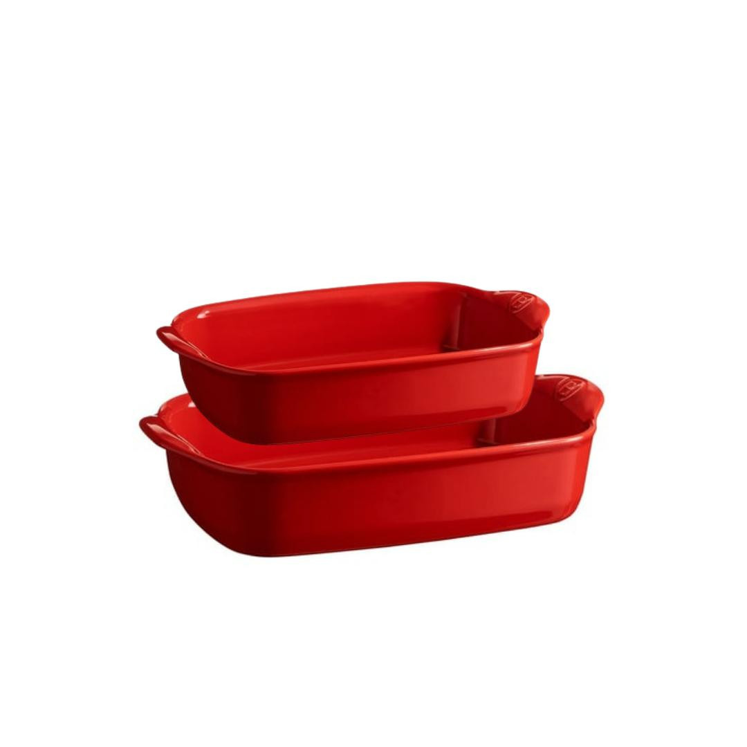 Emile Henry Fırın Kabı Dikdörtgen 2 Li Set Kırmızı/burgundy