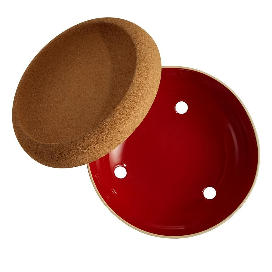 Akıllı bir tasarımla ve doğal malzemeler kullanılarak üretilen, taze ürünleri saklamak için ideal olan Büyük Saklama Kabı 2 seviyede çalışır. Meyve kabı işlevi gören mantar kapak şık bir sunum sağlarken, seramik taban soğan, pancar veya patatesleri taze ve gözden uzak tutmak için bir alan sunuyor. Kapağın altında ışık olmaması filizlenmeyi yavaşlatır ve 3 küçük delik tam doğru miktarda havalandırma sağlar. Mantar ve seramiğin yalıtım özellikleriyle birleşen Emile Henry Büyük Saklama Kabı, mutfağınızın veya yemek odanızın tam kalbinde bir mahzendekine benzer koşulları oluşturur. Üst kısımda mantar kap en narin meyveleri bile özenle barındırır. Mantar yüzeyi üzerinde bulunan bir meyvenin temas noktasında bozulma olasılığı azalır. Farklı kültürden aktarılan ipuçları, mantarın meyve sineklerinin uzak tutulmasına ve meyvenin bırakabileceği nemin emilmesine yardımcı olduğu fikrine dayanır. Geniş ve zarif görünümüyle birlikte Büyük Saklama Kabını bu kadar özel yapan da budur.