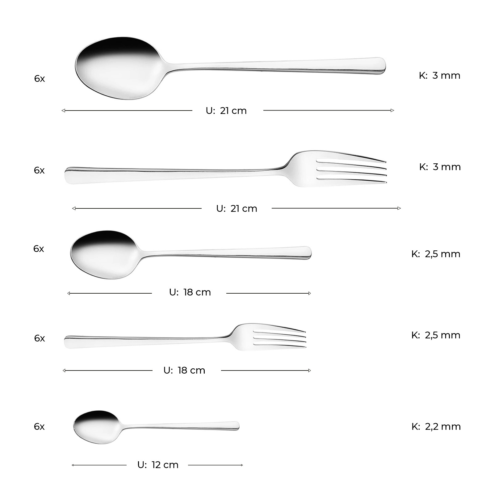 - 6 Adet Tatlı Kaşığı (18 cm – 2,5 mm)